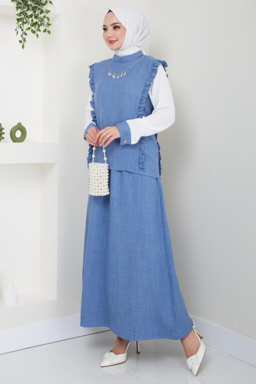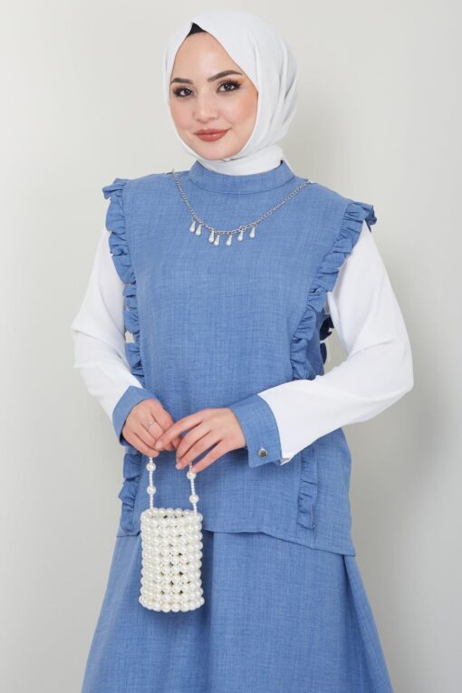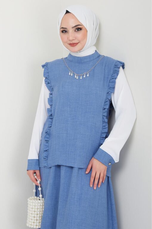 ميزة المنتج: إنه نموذج مزدوج يتكون من سترة وتنورة على شكل قلادة. خصر التنورة مرن. يُغلق التونيك بزر في الخلف ويتميز بكشكشة. لها مظهر أنيق. يعد موديل السترة البدلة لدينا خيارًا مثاليًا لإكمال أناقتك. قد يكون هناك اختلاف في درجة اللون في لون المنتج بسبب اللقطات المفاهيمية.
