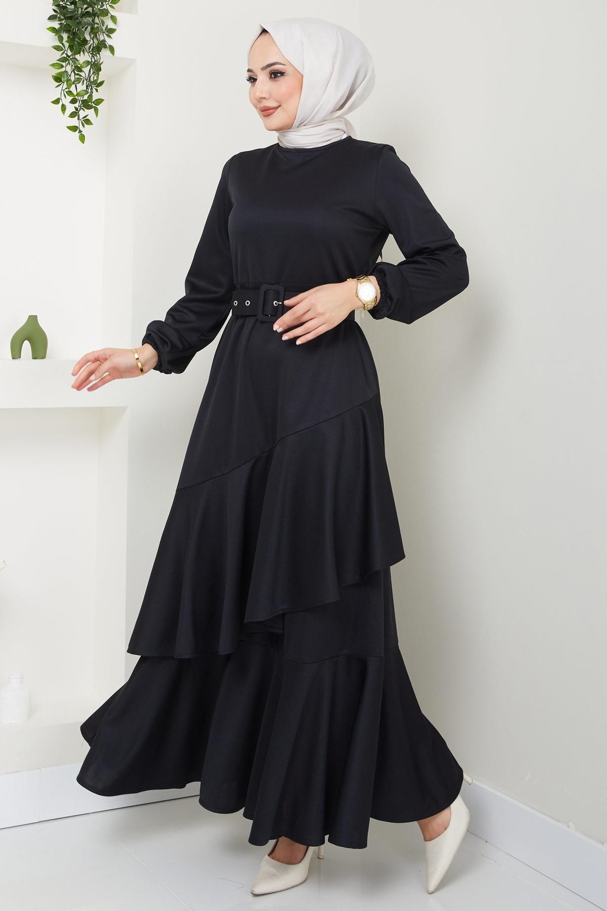 مميزات وعيوب فستان بحزام ومفصل باللون الأسود HM2421
