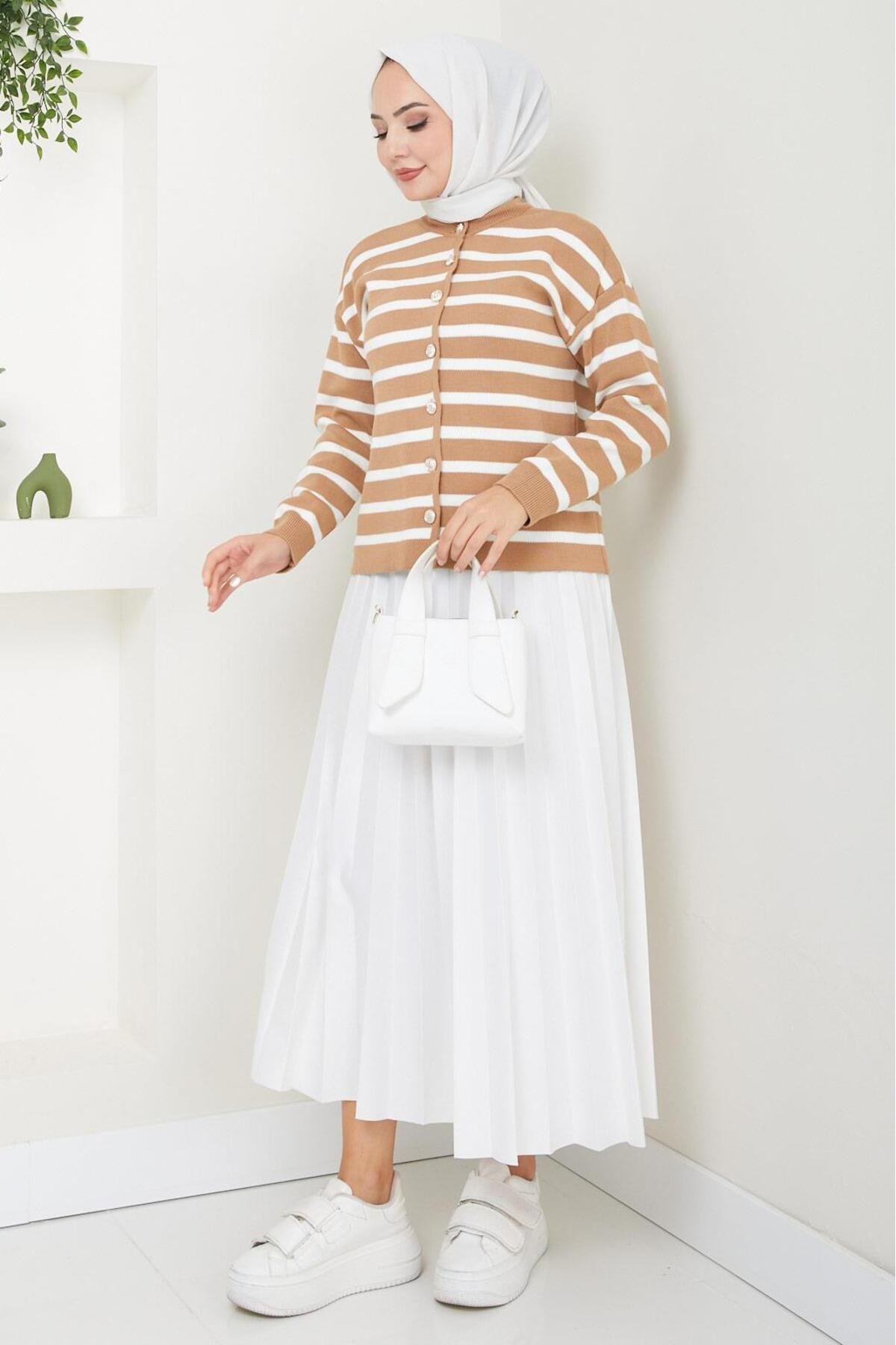 ميزة المنتج: إنه موديل سترة قصيرة متماسكة بأزرار وخطوط لموسم الخريف والشتاء. مناسب للمقاس 36-42. قد يكون هناك اختلاف في لون المنتج بسبب اللقطات المفاهيمية.