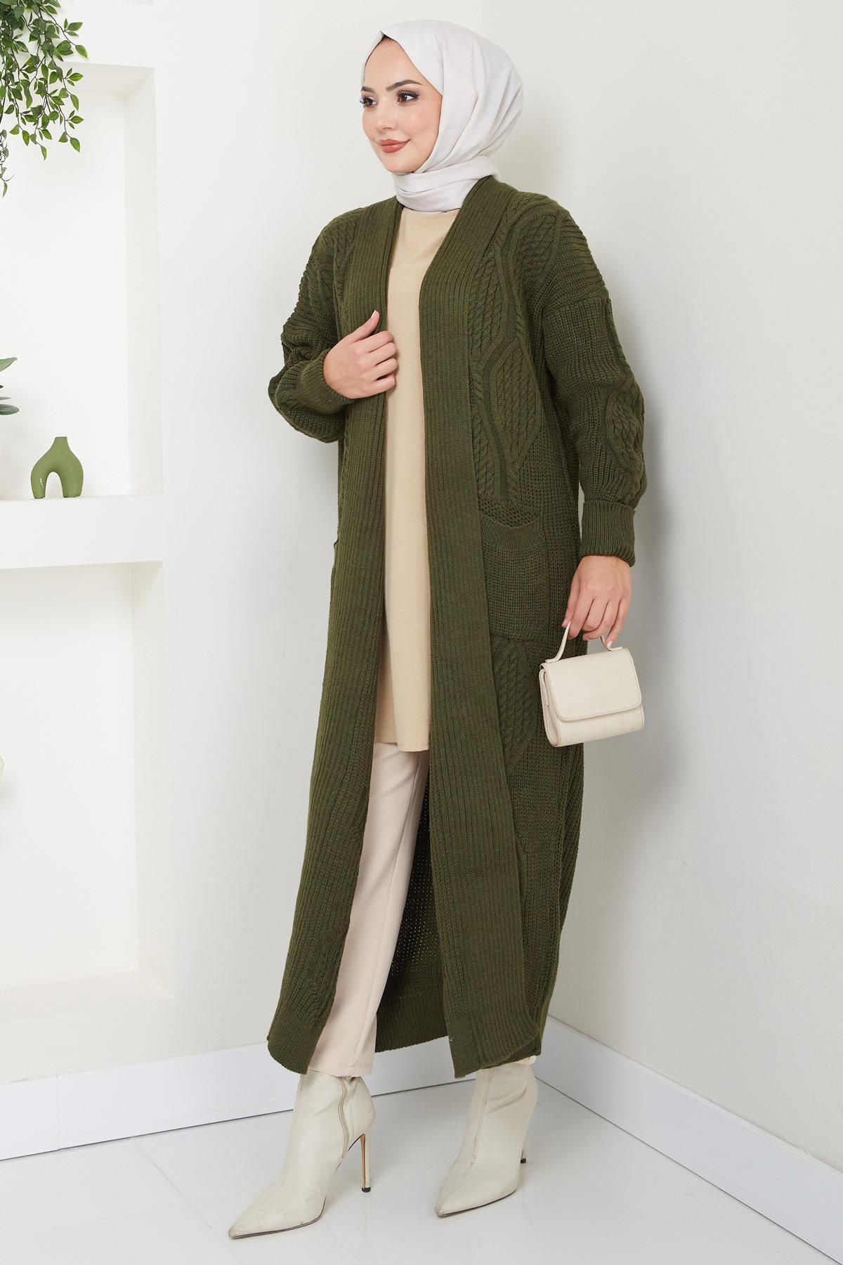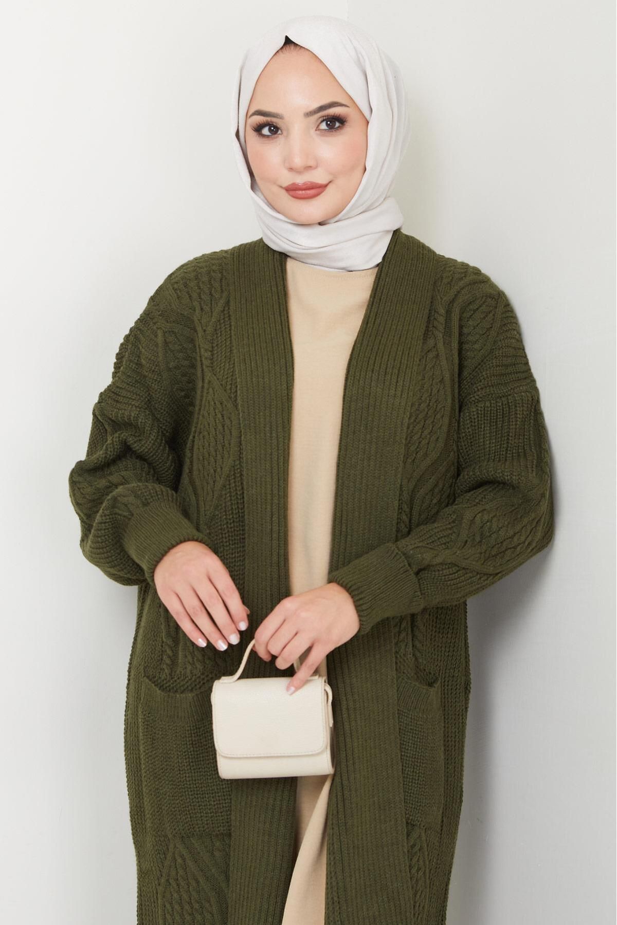 ميزة المنتج: إنه موديل الموسم الجديد من سترة محبوكة بطول كامل، منقوشة، بجيوب، بياقة شال. مناسب للمقاس 36-42. قد يكون هناك اختلاف في لون المنتج بسبب اللقطات المفاهيمية.