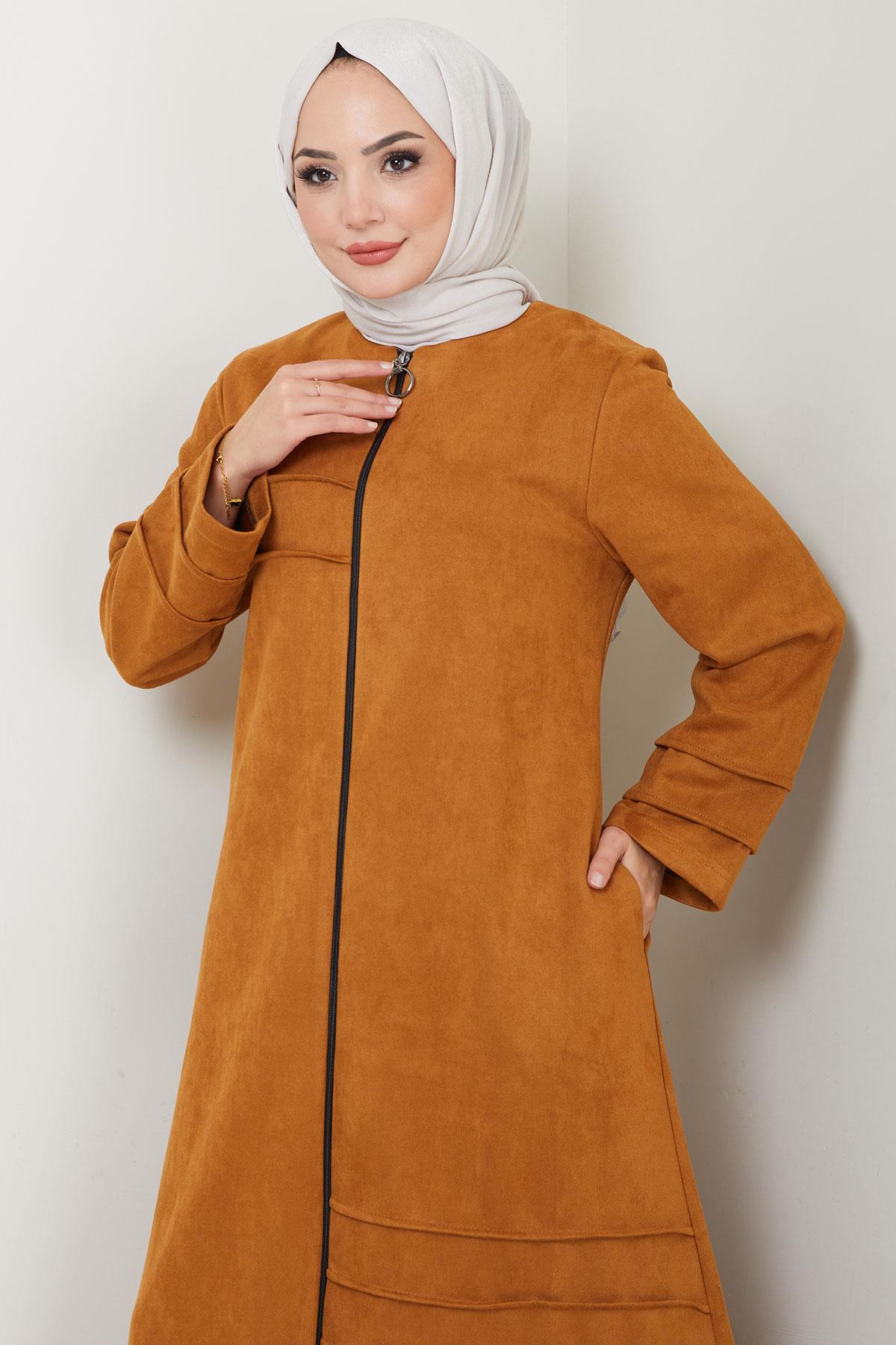 مميزات المنتج: عباية من الجلد السويدي بسحاب كامل الطول، وأكمام مضلعة، ورقبة دائرية، مناسبة للاستخدام الموسمي. تحتوي على جيوب وغير مبطنة. قد يكون هناك اختلاف في لون المنتج بسبب اللقطات المفاهيمية.