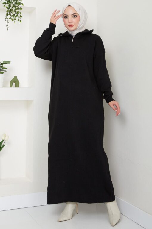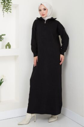 مميزات فستان تريكو عادي بياقة بسحاب أسود HM2568