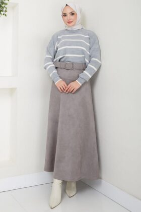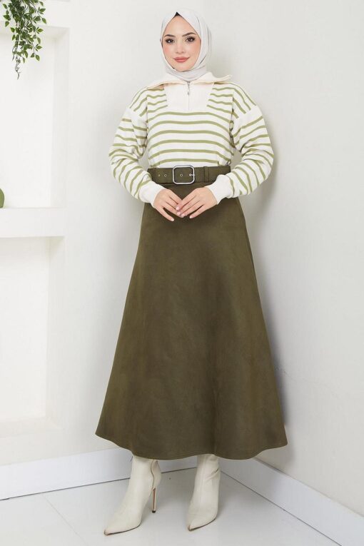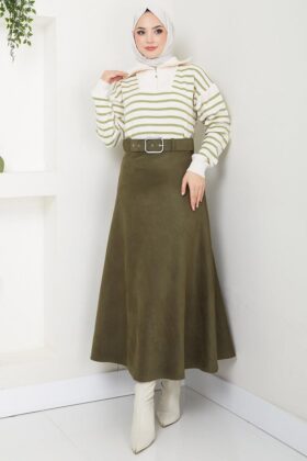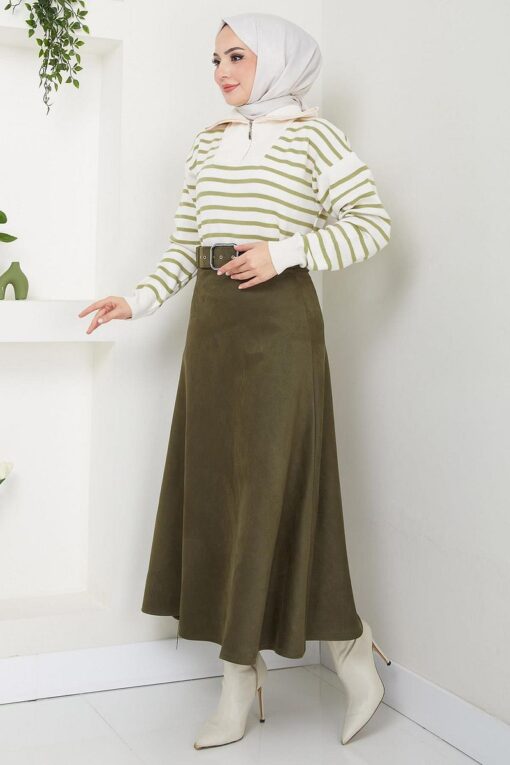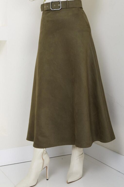 ميزات تنورة مولانا من جلد الغزال بحزام أسود HM2607