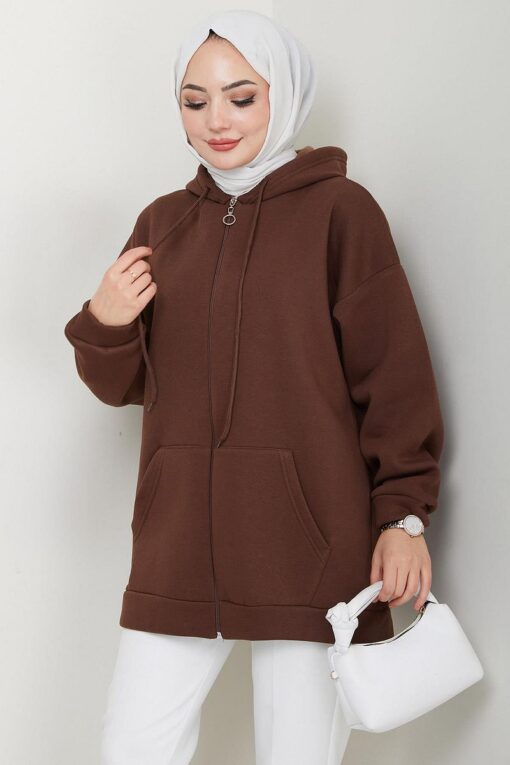 سويت شيرت بغطاء رأس وسحاب مرتفع بثلاثة خيوط باللون الأسود HM2648 المميزات