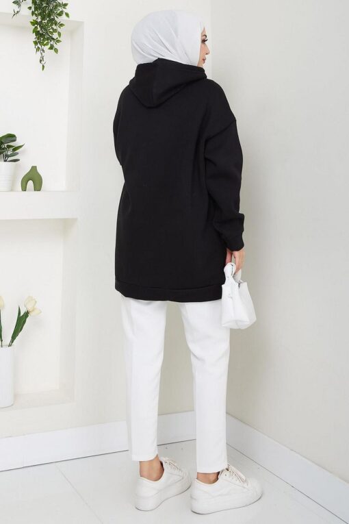 مميزات سترة سويت شيرت بجيب الكنغر وسحاب وثلاثة خيوط باللون الأسود HM2649