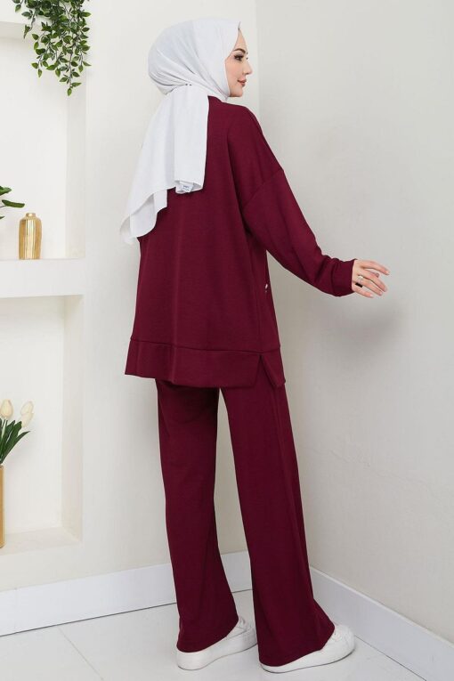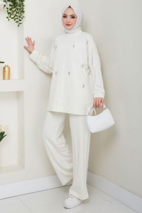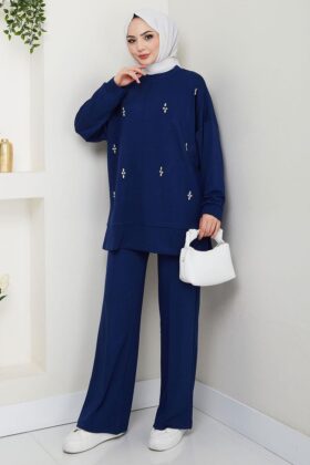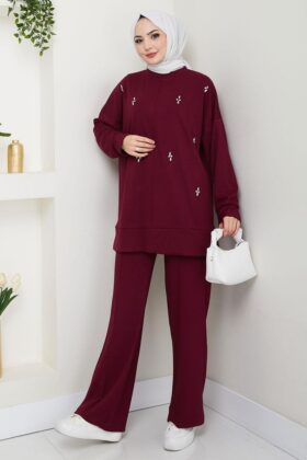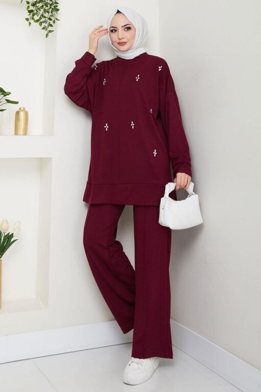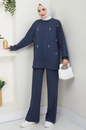 ميزات المنتج: إنه نموذج بدلة مكون من قطعتين يتكون من سترة مفصلة بالحجارة مع رقبة دائرية وبنطلون خصر مرن. الحجارة تتصلب فلا تسقط قد تكون هناك اختلافات في درجة لون المنتج بسبب اللقطات المفاهيمية.