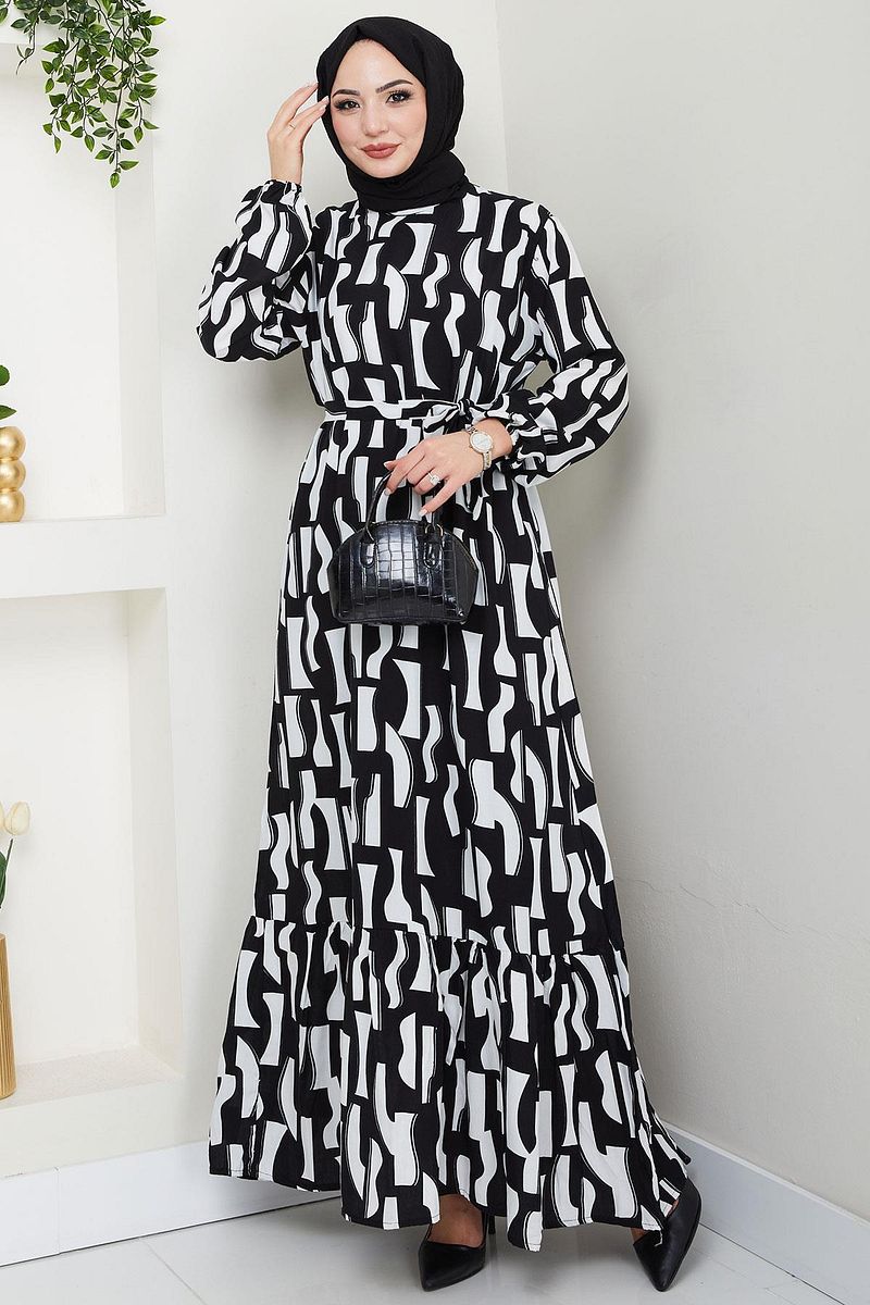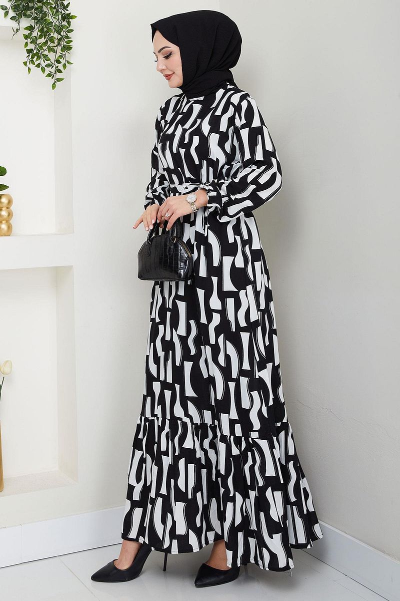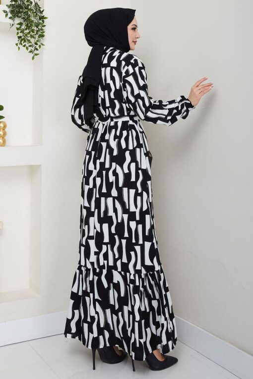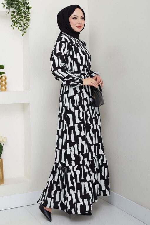 فستان فيسكوز منقوش بالدفيئة باللون الأسود HM2686 المميزات