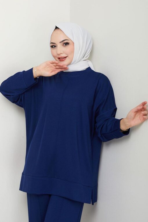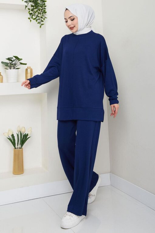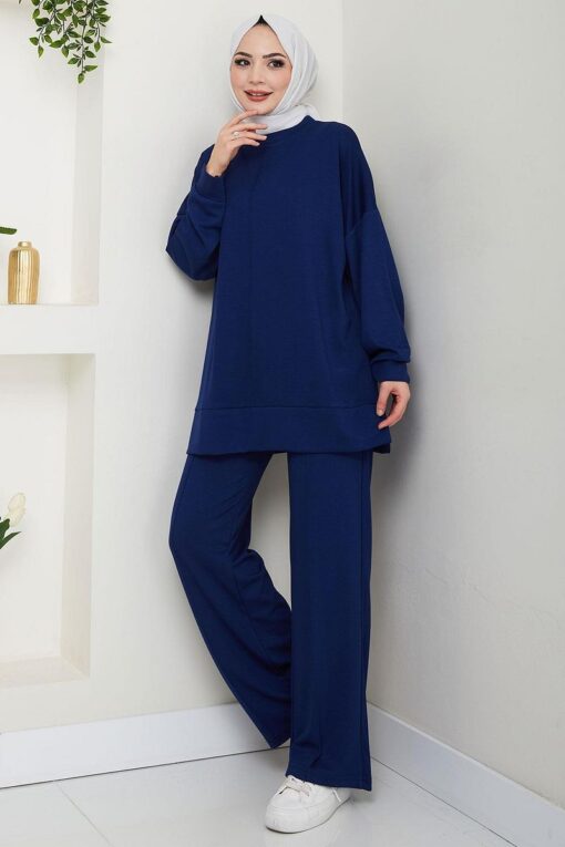 ميزات المنتج: إنه نموذج بدلة مزدوجة يتكون من سترة ذات رقبة دائرية وبنطلون خصر مرن. قد تكون هناك اختلافات في درجة لون المنتج بسبب اللقطات المفاهيمية.
