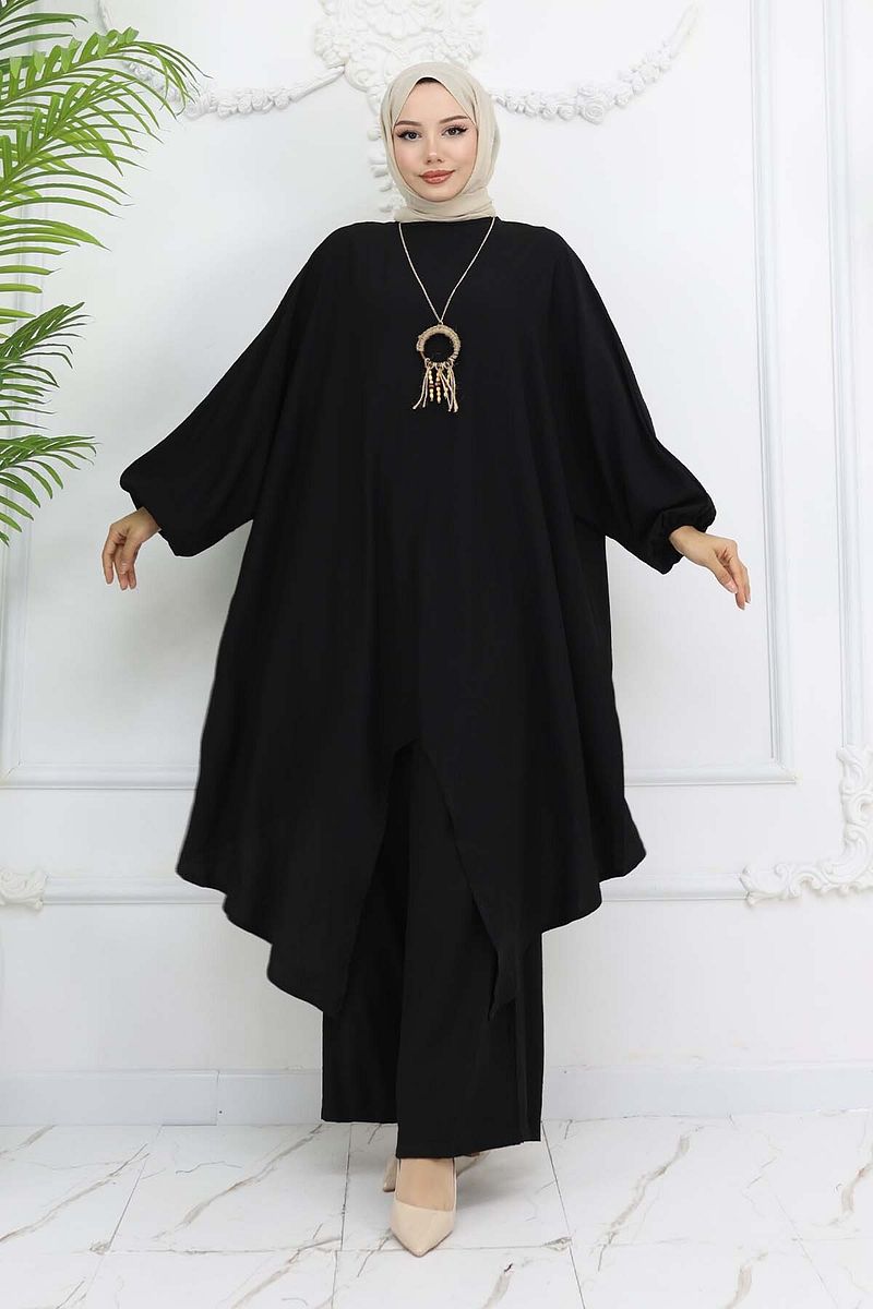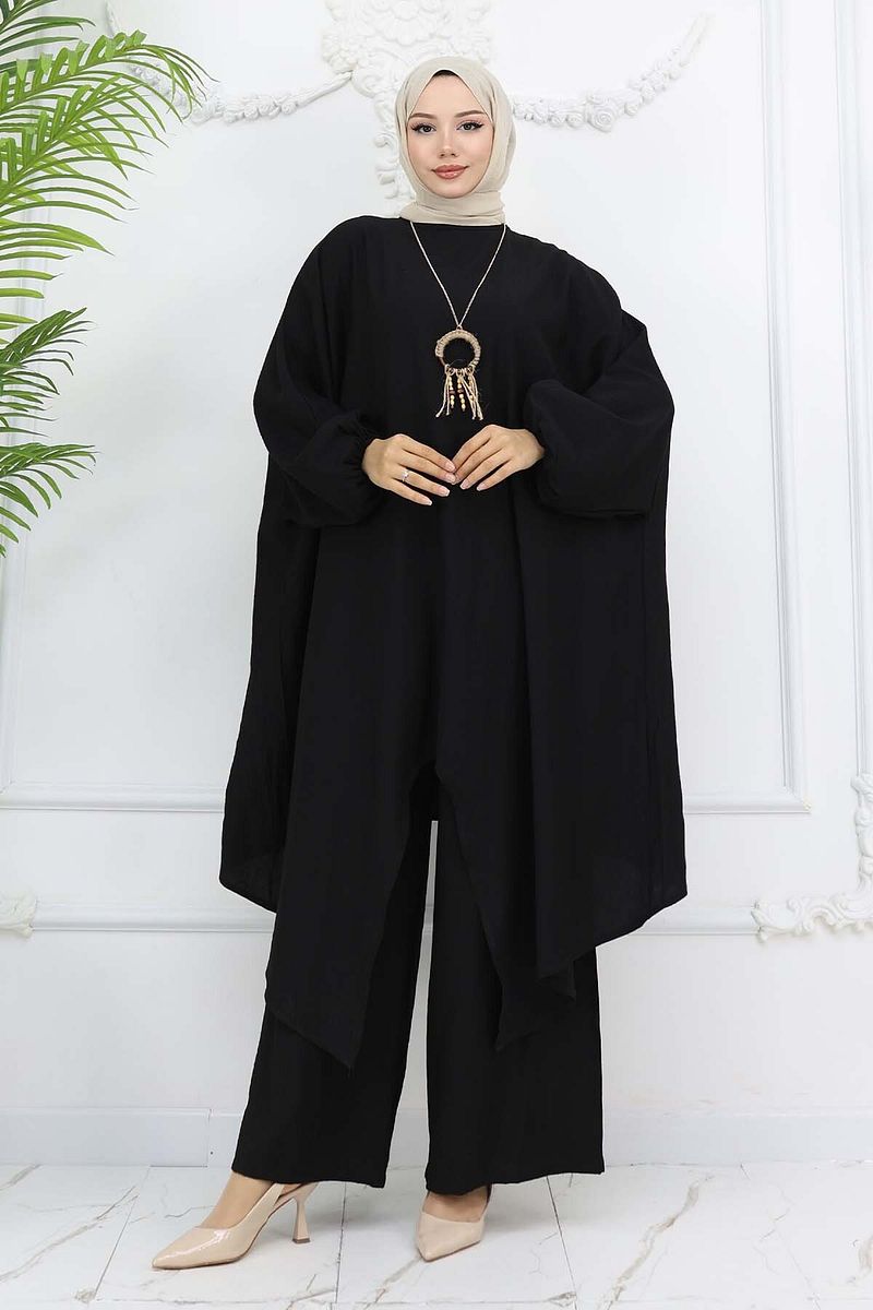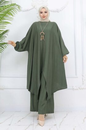 ميزة المنتج: المنتج طبيعي، يمكنك أخذ مقاسك. معلومات المنتج: طول الجزء العلوي: 125 سم الصدر: 156 سم طول البنطال: 97 سم 74 سم الورك: 130 سم. نوع القماش: فيسكوز بوليستر %5 لايكرا. قياسات الموديل: الارتفاع: 166 سم، الصدر: 90 سم، الخصر: 71 سم، الورك: 91 سم. منتجنا يتكون من قطعتين. خصر البنطلون مرن. القلادة متضمنة. المنتج الموجود على العارضة هو مقاس M/38. قد يكون هناك اختلاف في لون المنتج بسبب اللقطات المفاهيمية.