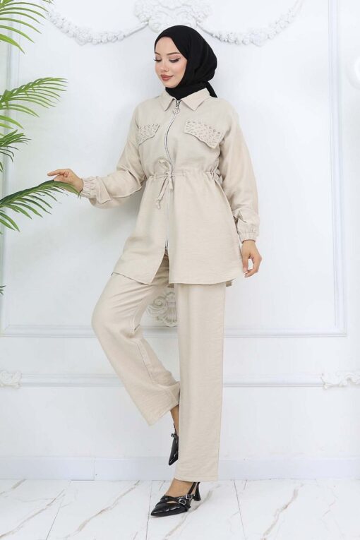 مميزات المنتج: المنتج عادي، يمكنك اختيار مقاسك. معلومات المنتج: طول الجزء العلوي: ٧٧ سم، الصدر: ١١٠ سم، طول البنطال: ١٠٠ سم، الخصر: ٦٦ سم، الوركين: ١١٤ سم. نوع القماش: فيسكوز ١TP4T٥٠، بوليستر ١TP4T45، لايكرا ١TP4T5. قياسات العارضة: الطول: ١٦٦ سم، الصدر: ٩٠ سم، الخصر: ٧١ سم، الوركين: ٩١ سم. مقاس المنتج على المانيكان: ٣٨/M. يتكون منتجنا من قطعتين. خصر البنطال مرن. قد يختلف لون المنتج بسبب الصور التوضيحية.