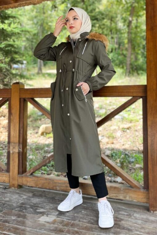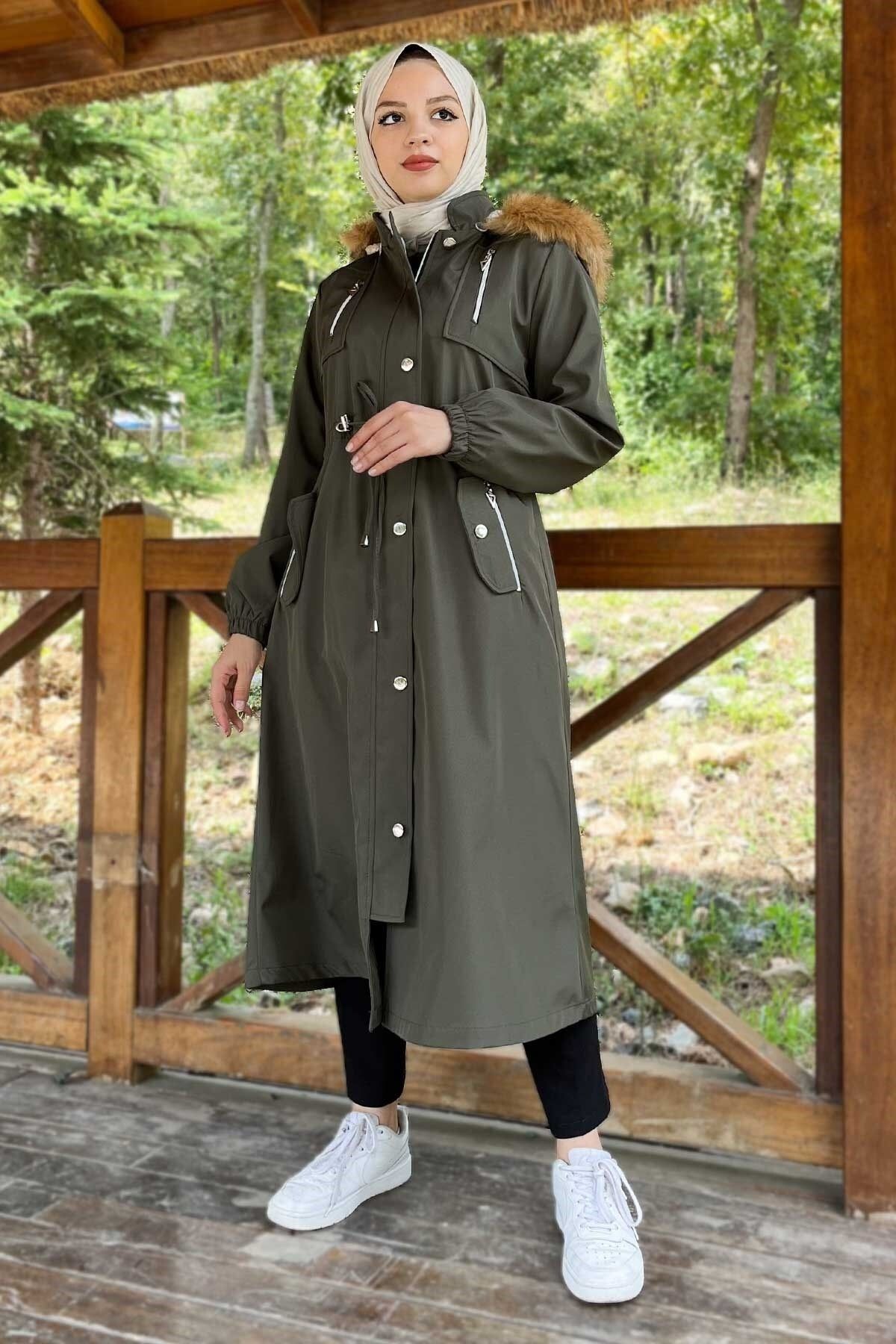 ميزة المنتج: إنه منتج أزياء الحجاب للموسم الجديد. وهي مبطنة بالفراء. يحتوي على سحاب أمامي قابل للاستخدام. الجيب متاح. غطاء محرك السيارة هو المحمول. يتميز بخصر ذو أربطة. قد يكون هناك اختلاف في لون المنتج بسبب اللقطات المفاهيمية.