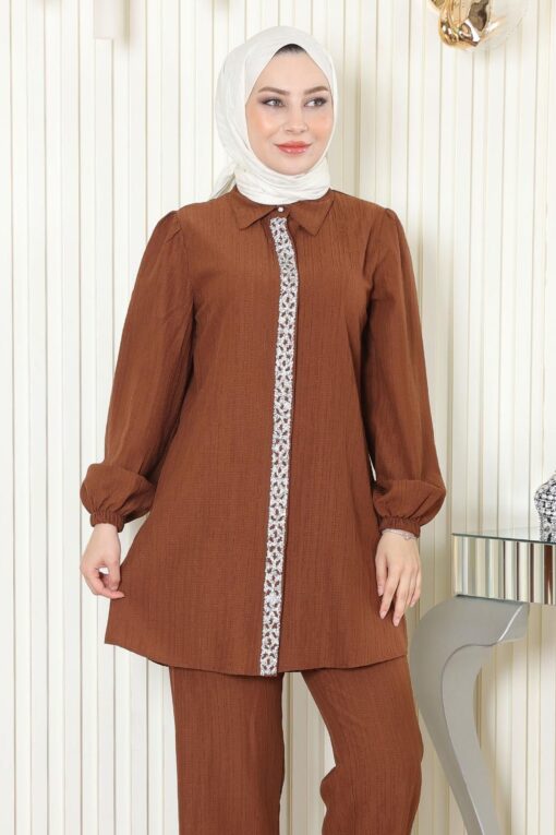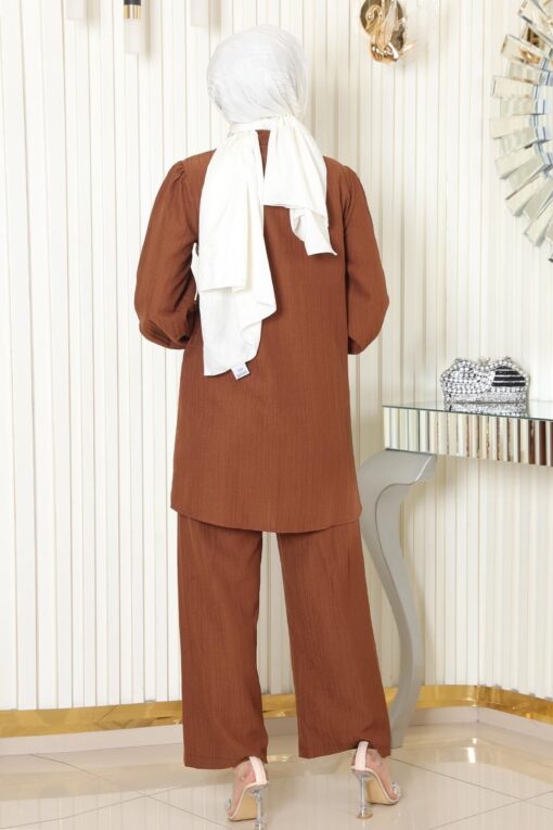 ميزة القماش: مصنوع من قماش الكتان مع مساحة مشط. ميزة المنتج: إنه منتج أزياء الحجاب للموسم الجديد. إنه غير مُبطن. التونيك به أزرار متاحة في الأمام. الكفة مرنة. يتميز البنطلون بخصر مطاطي. قد يكون هناك اختلاف في لون المنتج بسبب اللقطات المفاهيمية. مقاس 38 على الموديل جدول المقاسات متوفر بالصور.