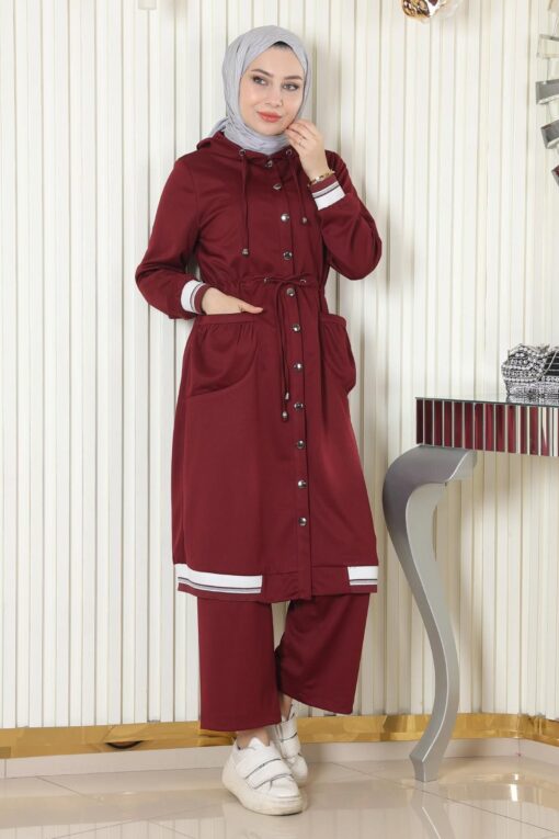ميزة المنتج: إنه منتج أزياء الحجاب للموسم الجديد. إنه غير مُبطن. التونيك به أزرار متاحة في الأمام. الأصفاد والتنورة مضلعة. يتميز بخصر ذو أربطة. الجيب متاح. يتميز البنطلون بخصر مطاطي. قد يكون هناك اختلاف في درجة اللون في لون المنتج بسبب اللقطات المفاهيمية.