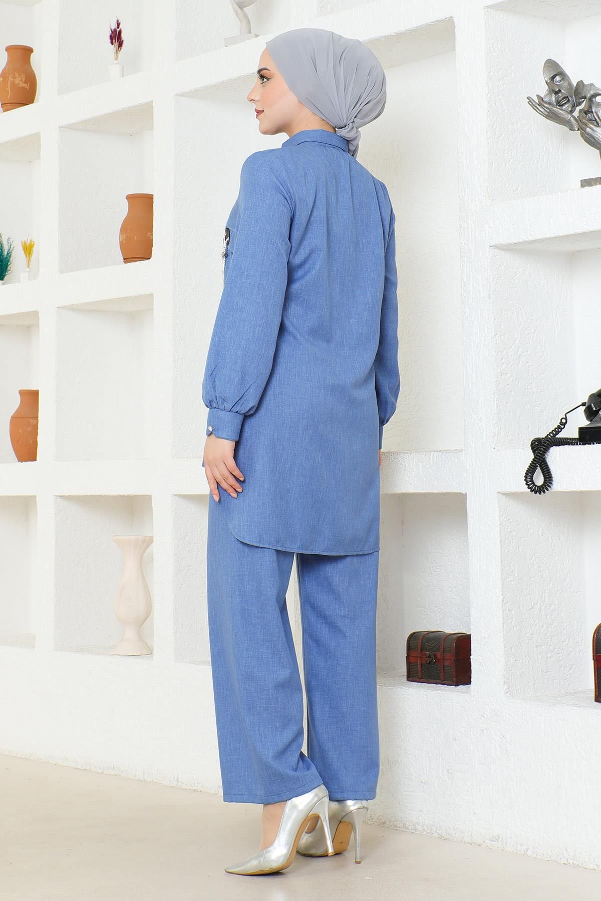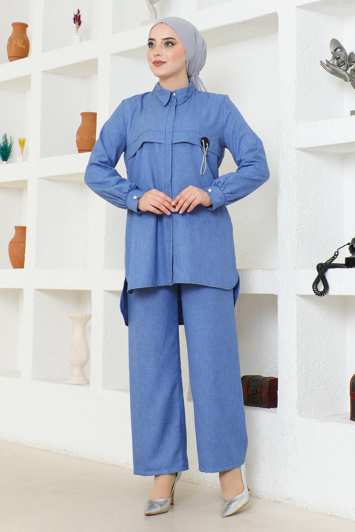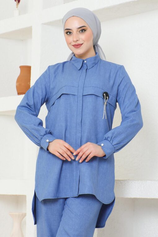 مميزات القماش: مصنوع من قماش الكتان المختلط. ميزة المنتج: إنه منتج أزياء الحجاب للموسم الجديد. إنه غير مُبطن. التونيك مزود بسحاب مخفي في الأمام. جزء الرقبة والكفة لها تفاصيل حجرية. يتميز البنطلون بخصر مطاطي. قد يكون هناك اختلاف في لون المنتج بسبب اللقطات المفاهيمية. مقاس 38 على الموديل جدول المقاسات متوفر بالصور.