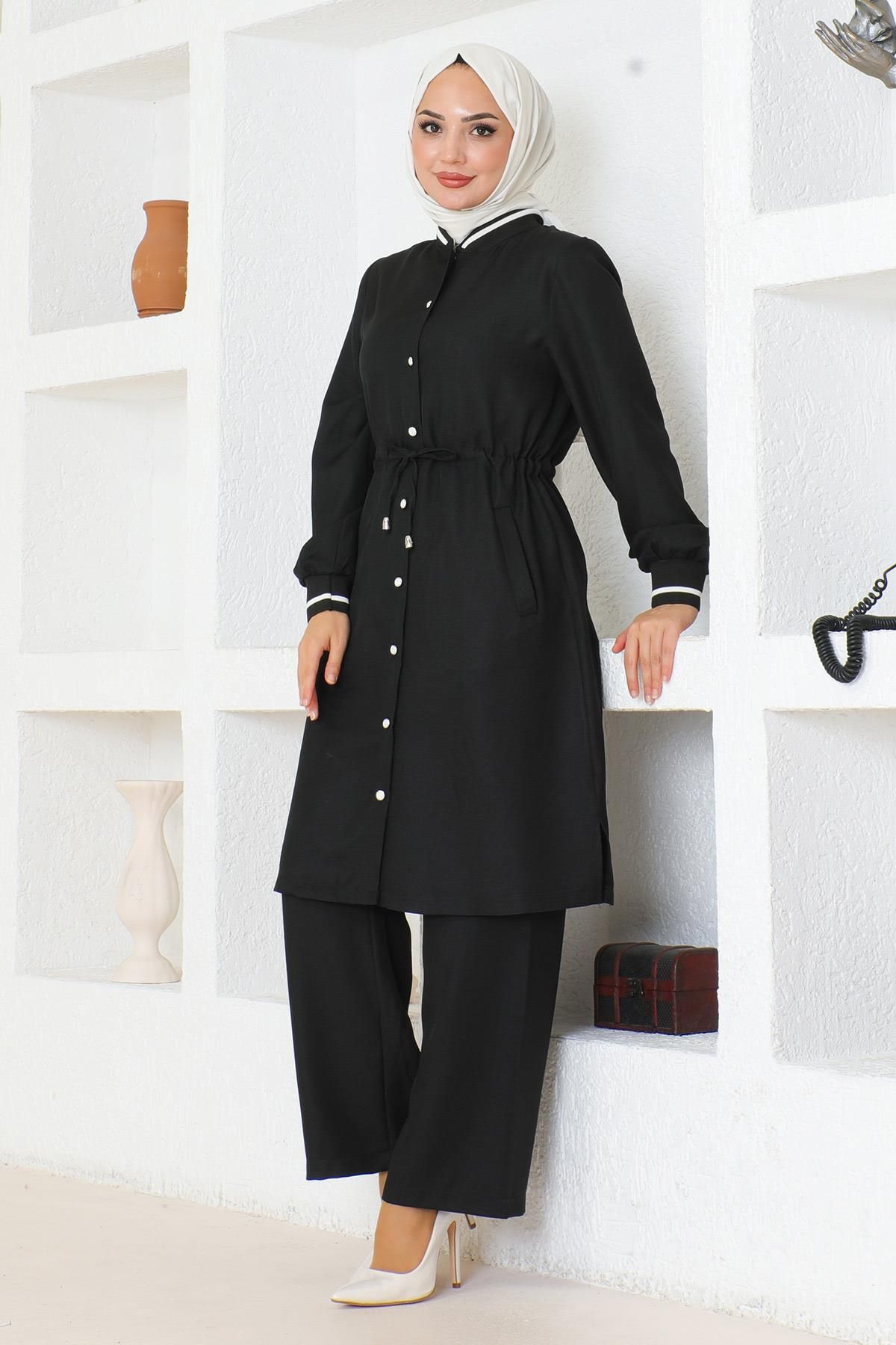 ميزة المنتج: إنه منتج أزياء الحجاب للموسم الجديد. إنه غير مُبطن. التونيك به أزرار متاحة في الأمام. يتميز بخصر ذو أربطة. الجيب متاح. جزء الرقبة والكفة مضلعان. يتميز البنطلون بخصر مطاطي. قد يكون هناك اختلاف في درجة اللون في لون المنتج بسبب اللقطات المفاهيمية.