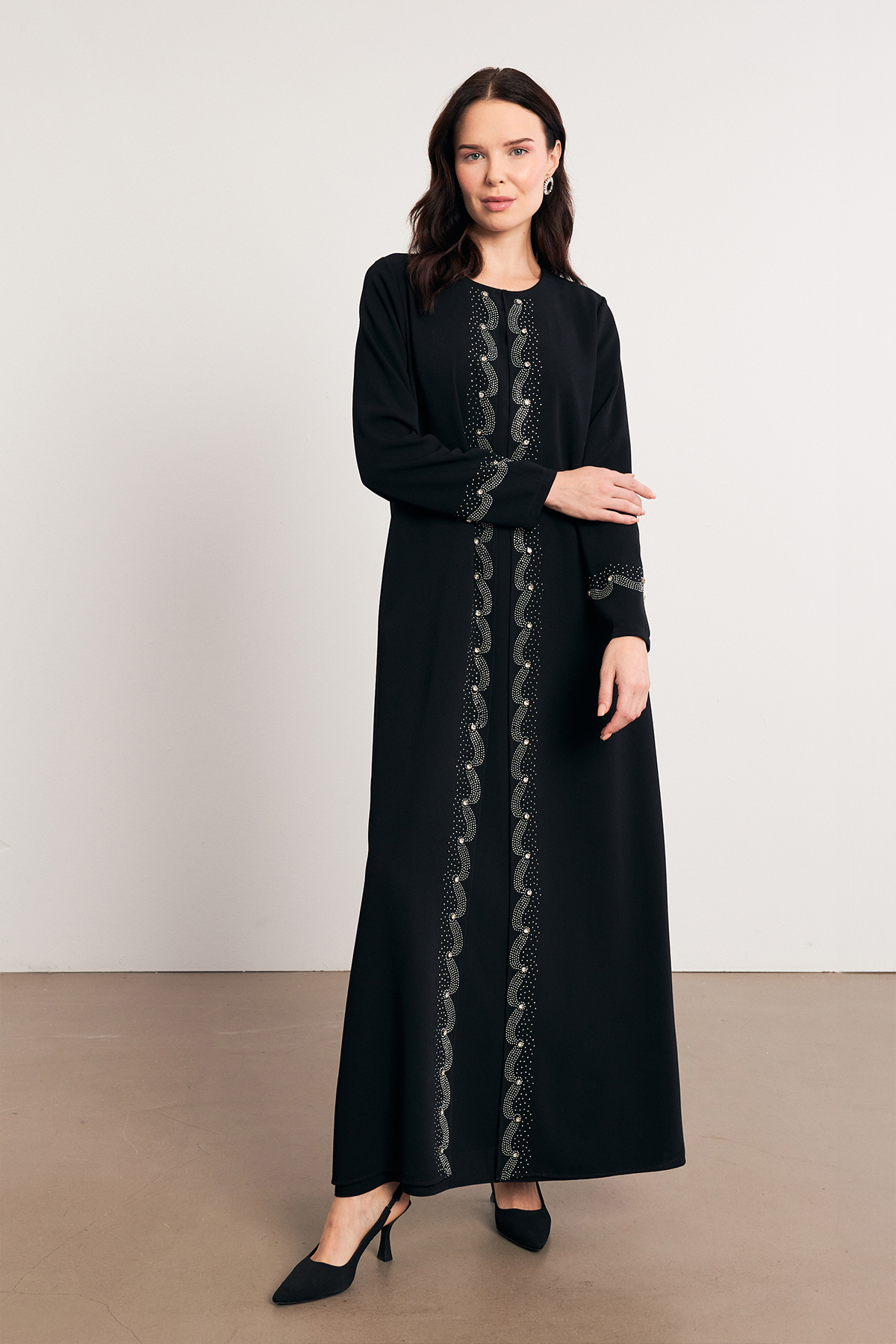 المنتج عبارة عن قطعة واحدة وبه سحاب مخفي في الخلف.