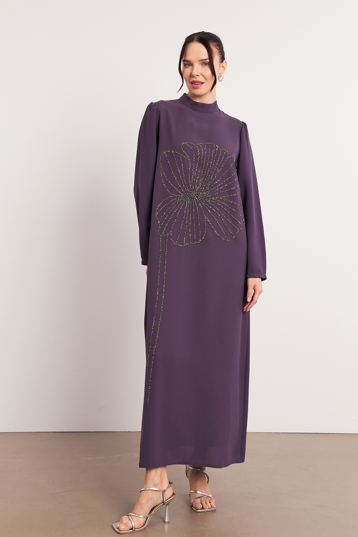 فستان سهرة بتفاصيل تطريز حجري