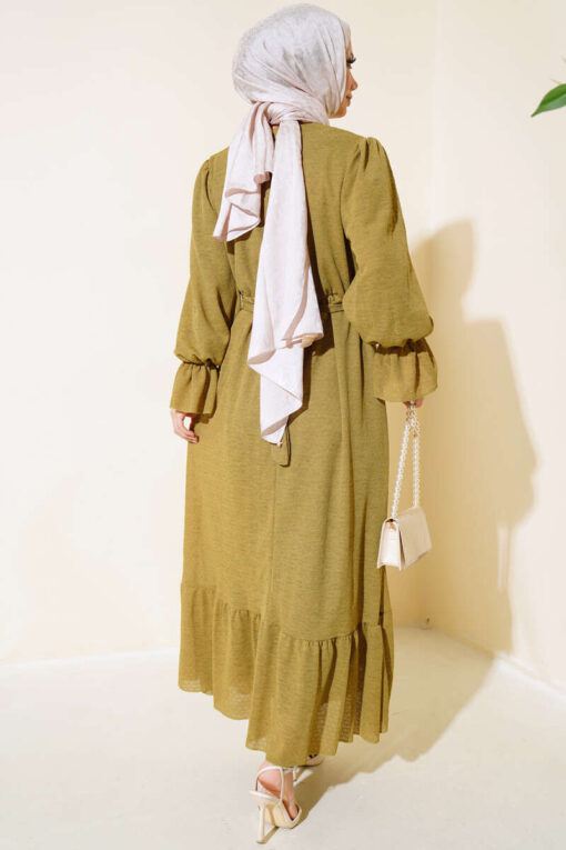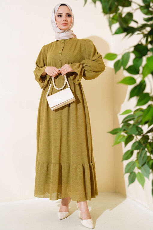 موديل فستان الموسم الجديد معك. فستاننا نصف أزرار. الخصر والمعصمين مرنان. إنه مبطن. يحتوي على حلقتين للحزام حول خصره وحزام مصنوع من القماش الخاص به. إنه نموذج الكلمة. فستاننا منقوش ذاتيًا. فستاننا الأنيق والأنيق في انتظارك مع خيارات الألوان.