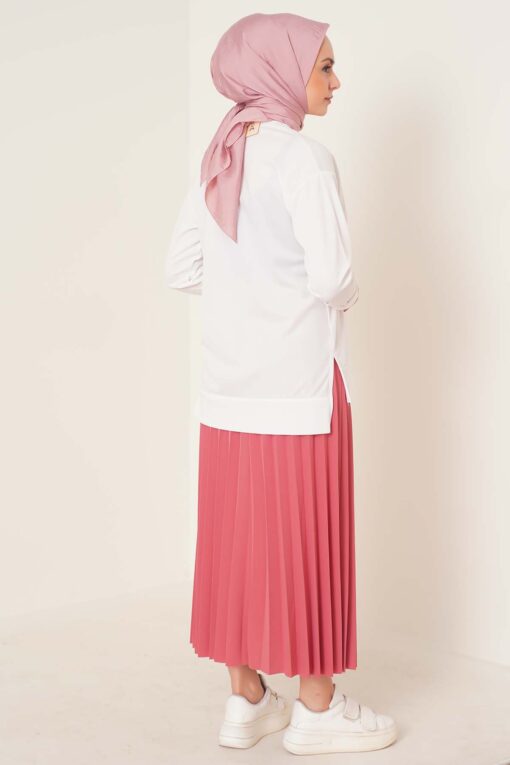 مجموعتنا المزدوجة هي موديل الموسم الجديد. سترة فريقنا مطبوعة بالورود. تتميز السترة ذات الرقبة الدائرية بفتحات على كلا الجانبين. الجزء الخلفي من سترتنا أطول من الأمام. تنورة بدلتنا المزدوجة هي نموذج مطوي. تنورتنا، ذات الخصر المطاطي، مفعمة بالحيوية للغاية بألوانها المكملة.