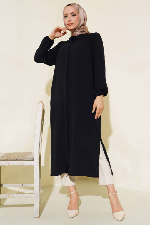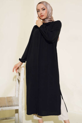 الارتفاع: 120 سم الصدر: 100 سم الخصر: 98 سم موديل تونيك الموسم الجديد معك بأسلوبه الأنيق. الجزء الأمامي من سترتنا به أزرار مخفية. إنه طوق القميص. وهو نموذج مربت. المعصمين مرنين. حافة السترة الخاصة بنا بها شق على الجانب. إنه نموذج طويل. التونيك الخاص بنا ينتظر مكانه في خزانتك مع خيارات الألوان الخاصة به. معلومات النسيج بوليستر قطن