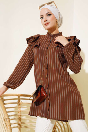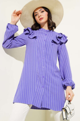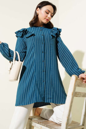 لقد وصل إليك تونيك موديل الموسم الجديد بتصميمه الأنيق والبسيط. أكتاف وياقة سترتنا مكشكشة. المعصمين مرنين. لديها أزرار في الأمام. إنه نموذج مخطط. سترتنا نالت إعجابك بتصميمها الأنيق. خيارات الألوان متاحة.