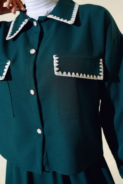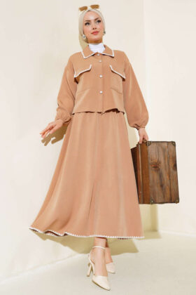 نموذج الفريق المزدوج للموسم الجديد معك. تحتوي الياقة وغطاء الجيب في سترتنا على تفاصيل خياطة. سترتنا بها جيبان. أصفاد سترتنا مرنة. الجزء الأمامي من سترتنا مزرر. خصر تنورتنا مرن. تتميز حاشية التنورة بتفاصيل الخياطة. لدينا خيارات الألوان. إنها تنتظر مكانها في خزانتك.