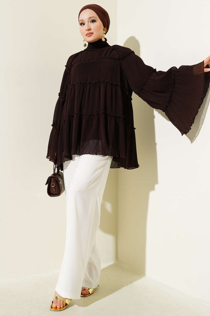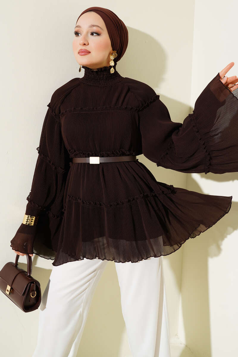 معلومات الموديل الارتفاع: 167 سم الصدر: 84 سم الخصر: 65 سم الورك: 95 سم المنتج الموجود على الموديل هو مقاس 36/38. يتم استخدام الحزام كإكسسوار.