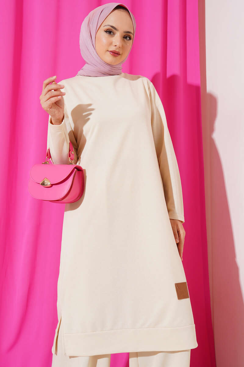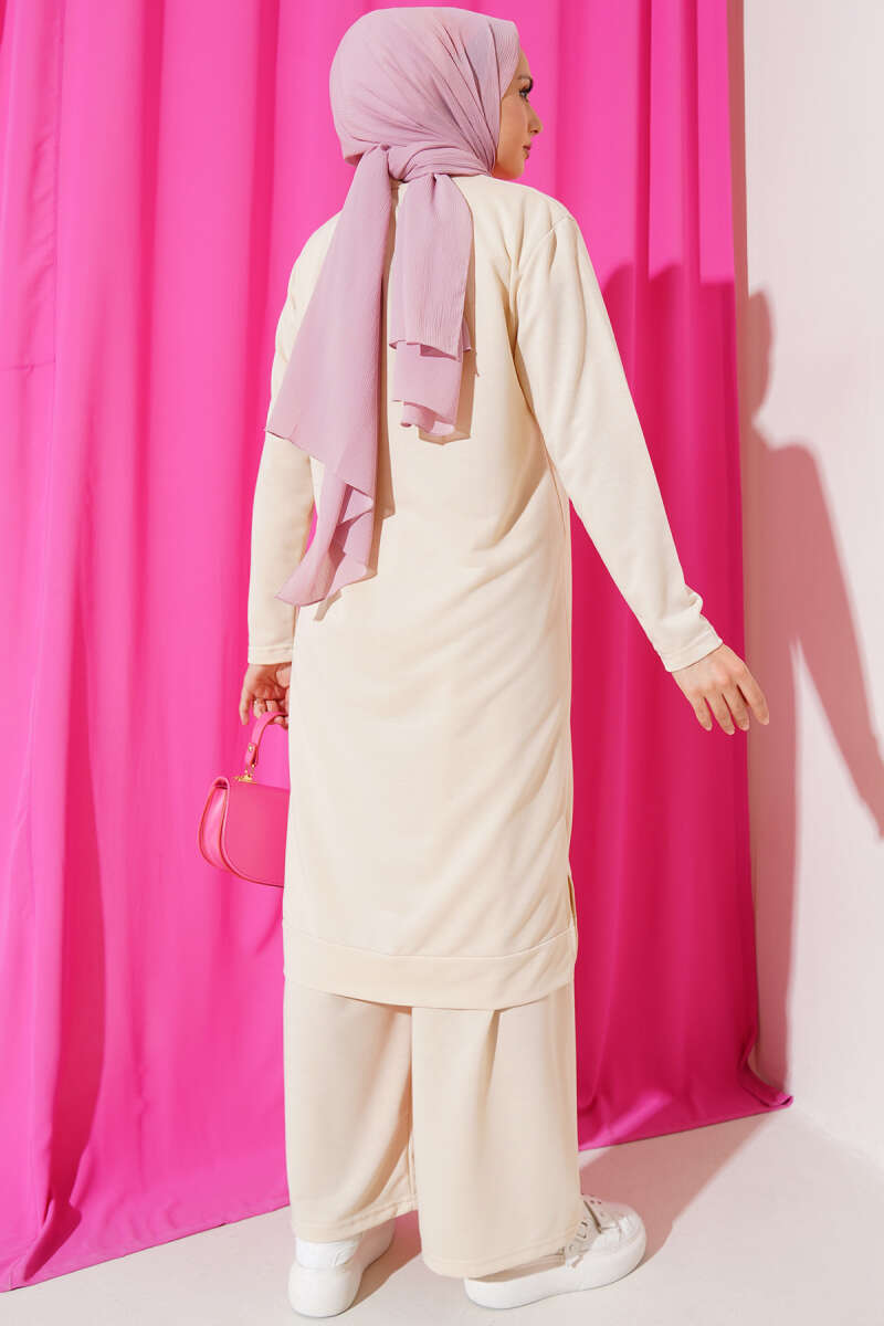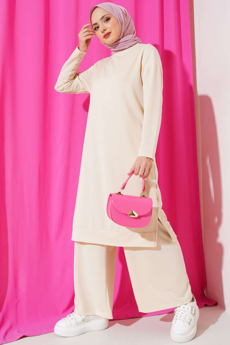 فريقنا الزوجي للموسم الجديد معك. حاشية السترة لدينا مطرزة ولها شقوق على الجانبين. التونيك الخاص بنا، وهو موديل ذو أكتاف منخفضة، هو موديل كبير الحجم. خصر بنطالنا مرن. إنه نموذج ذو أرجل واسعة. مجموعتنا المزدوجة المريحة تنتظر مكانها في خزاناتك.