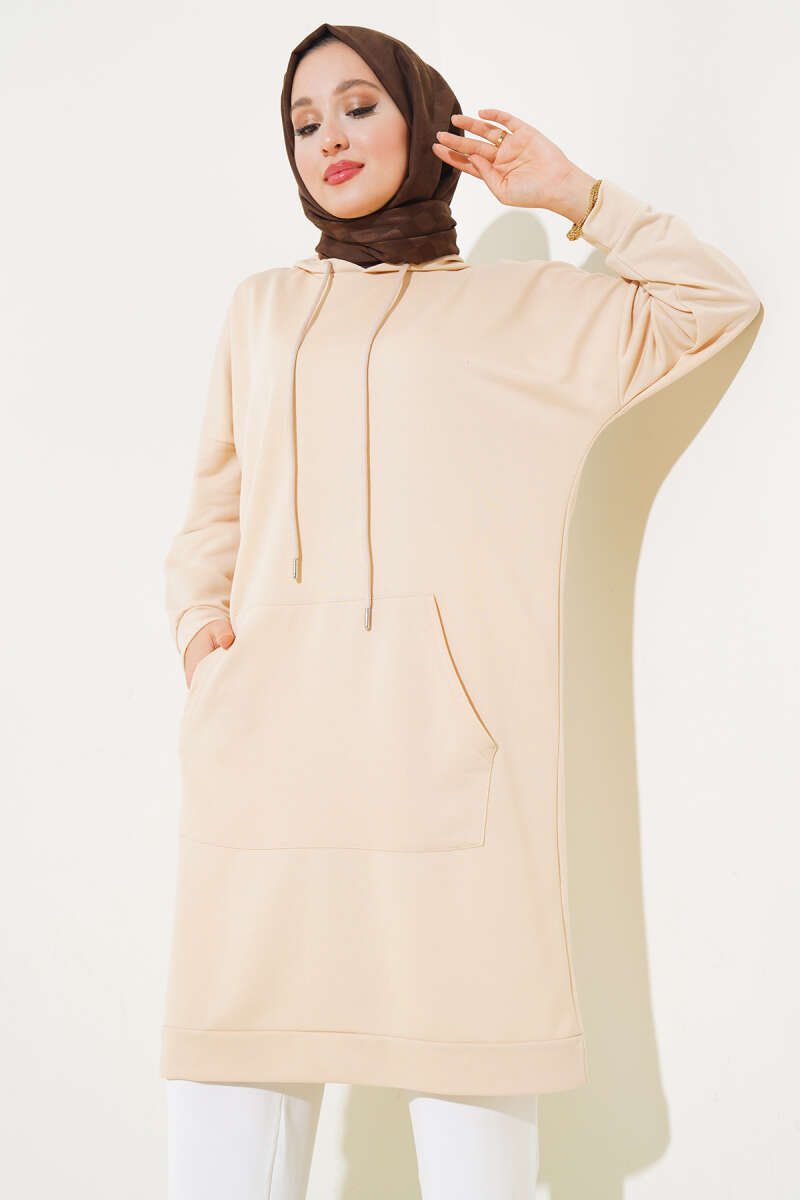 موديل التونيك للموسم الجديد معك. يحتوي نموذج السترة الطويلة لدينا على جيوب الكنغر. انها مقنعين. إنه نموذج ذو أكتاف منخفضة. خيارات الألوان متاحة.