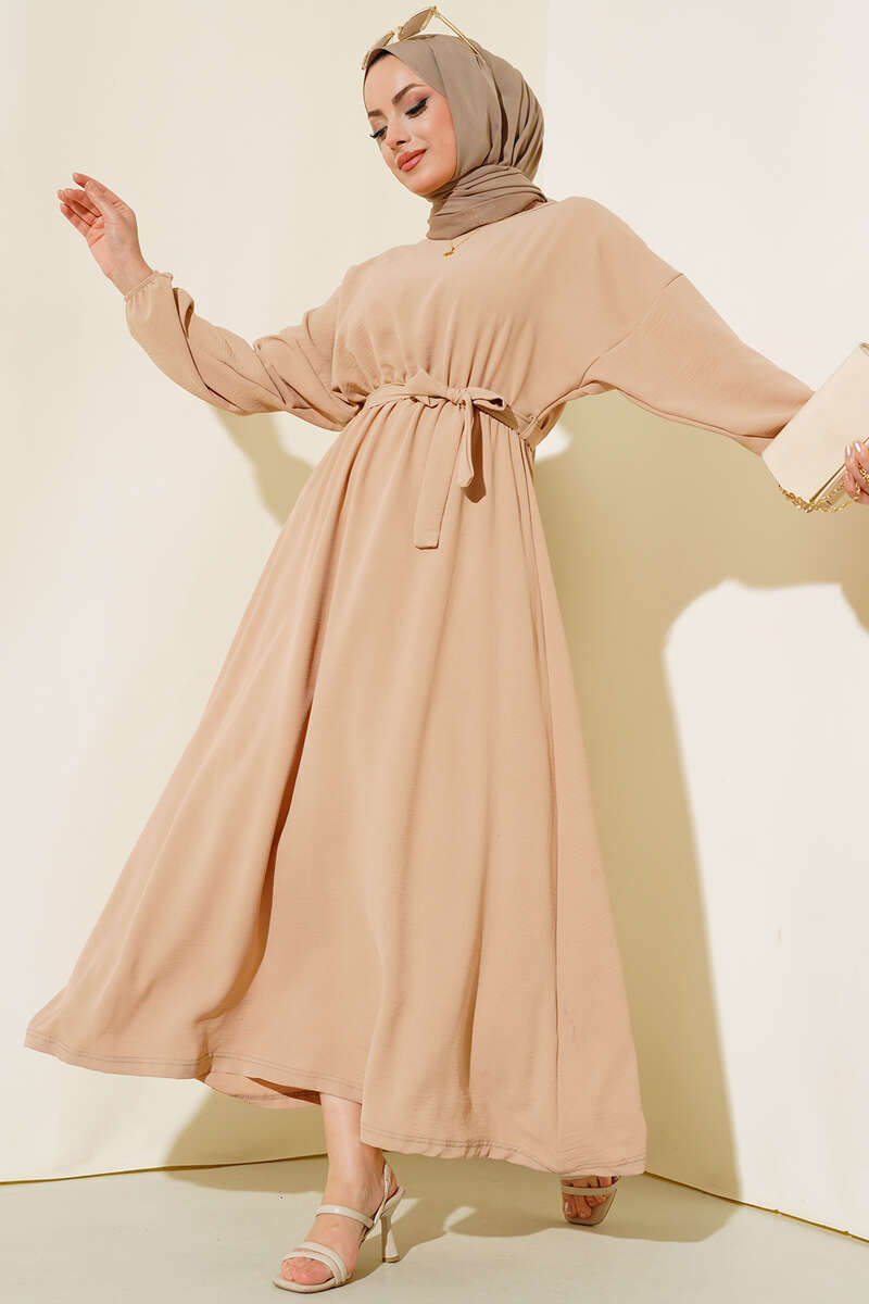 موديل فستان الموسم الجديد معك. فستاننا، ذو الحزام عند الخصر، هو موديل بأكمام الخفاش. إنه نموذج متوهج. يتميز بمرونة عند الخصر. هناك نوعان من الجسور المقوسة. نموذج الفستان الخاص بنا، والذي يمكنك دمجه بين الطرازين الأنيق والرياضي، به خيارات ألوان.