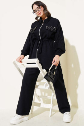 معلومات الموديل الارتفاع: 167 سم الصدر: 87 سم الخصر: 67 سم الورك: 91 سم المنتج الموجود على العارضة هو مقاس M.