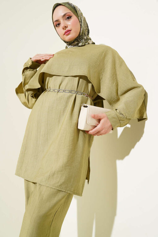 معلومات الموديل الارتفاع: 167 سم الصدر: 87 سم الخصر: 67 سم الورك: 91 سم المنتج الموجود على الموديل هو مقاس M. يتم استخدام الحزام كإكسسوار.
