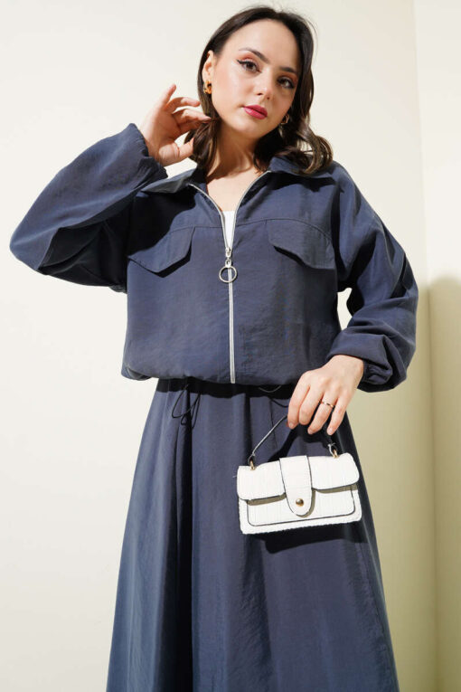 معلومات الموديل الارتفاع: 167 سم الصدر: 87 سم الخصر: 67 سم الورك: 91 سم المنتج الموجود على العارضة هو مقاس M.