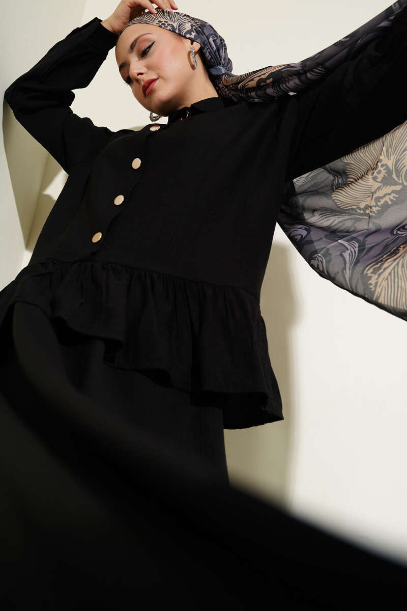 معلومات الموديل الارتفاع: 167 سم الصدر: 87 سم الخصر: 67 سم الورك: 91 سم المنتج الموجود على الموديل هو مقاس M.