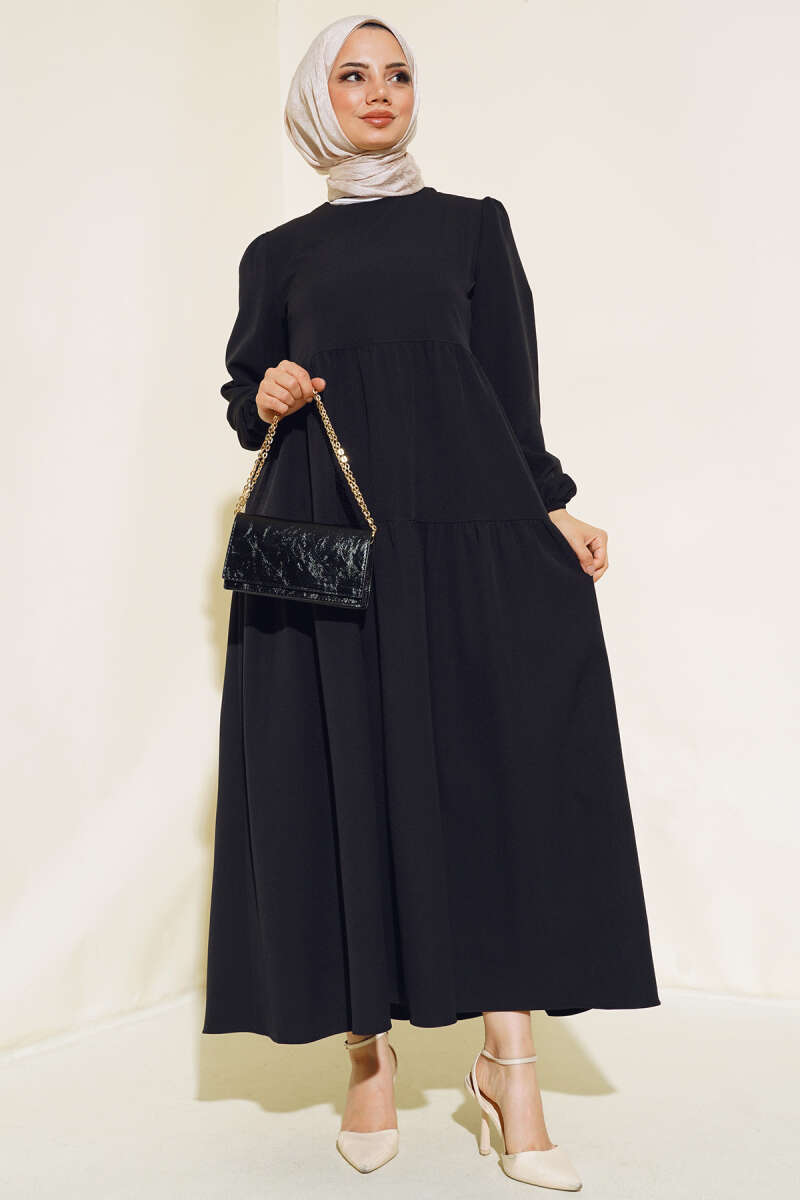 الخصر: 88 سم فستان الموسم الجديد معك. فستاننا هو نموذج الطبقات. إنه غير مُبطن. لها أكمام طويلة. المعصمين مرنين. فستاننا البسيط والأنيق ينتظر مكانه في خزانتك بخيارات ألوانه.