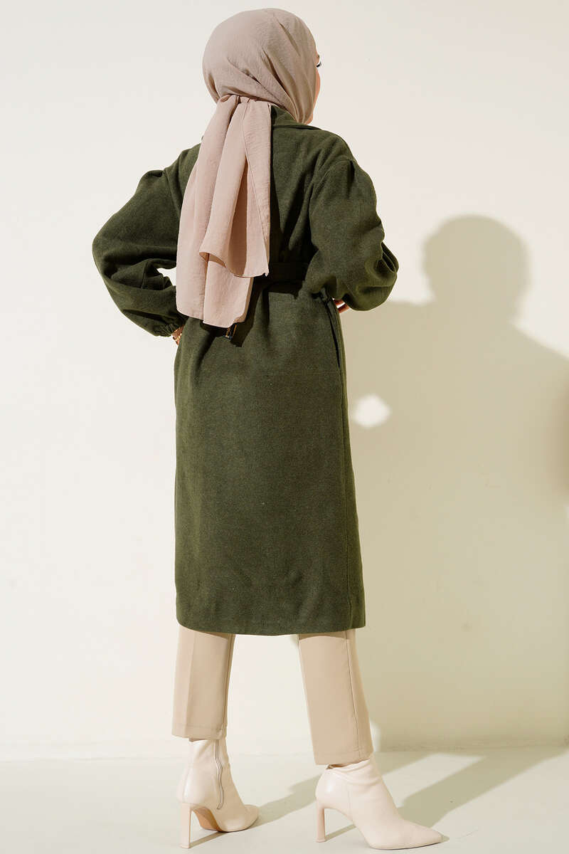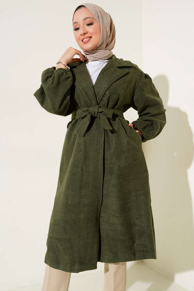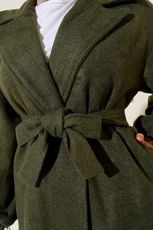 يتميز معطف الكاش الخاص بنا للموسم الجديد بمعصمين مطاطيين. معطفنا، الذي يتم ربطه بحزام عند الخصر، به حلقتان للحزام. المعطف هو نموذج منخفض الكتف وليس لديه أزرار. تحتوي على جيبين سريين على الجانبين. وهي غير مبطنة من الداخل.
