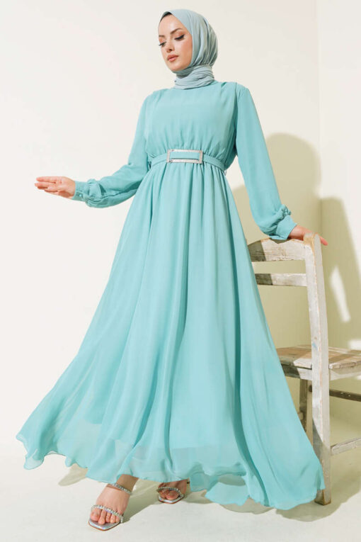 يوفر فستاننا النموذجي للموسم الجديد مظهرًا أنيقًا. خصر فستاننا مرن. إنه شيفون. الحزام معكوس وله حلقتان للحزام. هناك عين الطير وزر في مؤخرة رقبته. لديها بطانة. يمكنك ارتداؤه بشكل مريح في أي بيئة. متوفر بألوان مختلفة. معلومات النسيج
