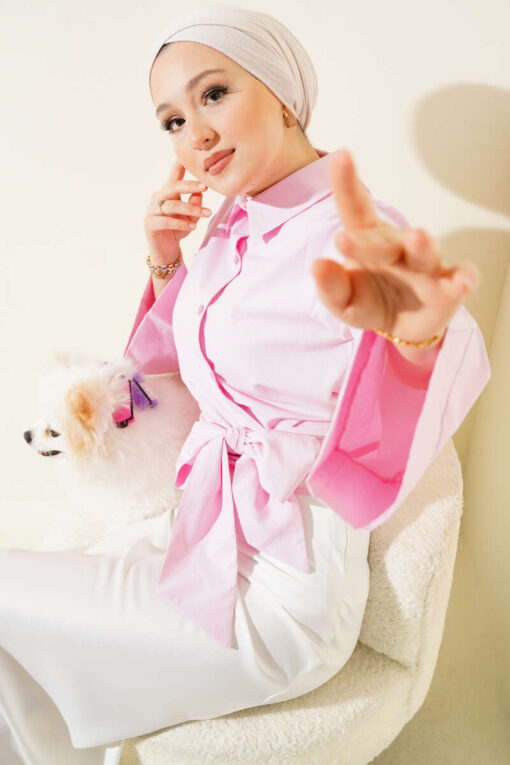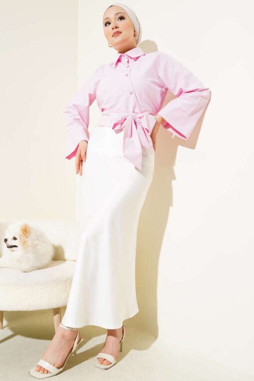 معلومات الموديل الارتفاع: 167 سم الصدر: 84 سم الخصر: 65 سم الورك: 95 سم المنتج الموجود على العارضة هو مقاس S.