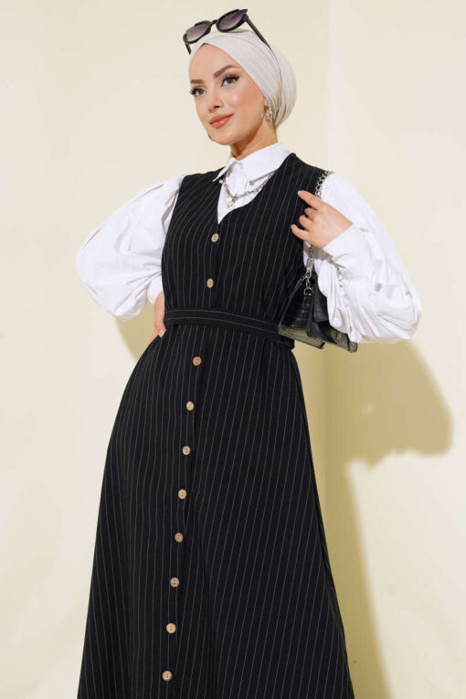 فستان جيليه للموسم الجديد معك بمظهره الأنيق. الجزء الأمامي من جيليتنا به أزرار. إنها رقبة على شكل حرف V. يحتوي جيليتنا على حلقتين للحزام على الخصر وحزام مصنوع من القماش الخاص به. إنه نموذج متوهج. فستان جيليه الخاص بنا معك في خيارات الألوان. معلومات النسيج