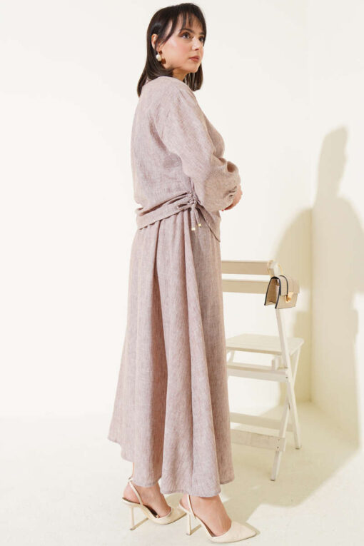 معلومات الموديل الارتفاع: 167 سم الصدر: 87 سم الخصر: 67 سم الورك: 91 سم المنتج الموجود على الموديل هو مقاس S.