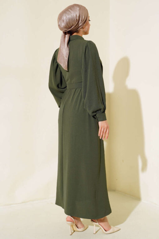 الارتفاع: 138 سم الخصر: 82 سم وصل لك فستان الموسم الجديد بتصميمه الأنيق. فستاننا بأكمام بالون. لديها نصف زر أمامي. إنه طوق القميص. تحتوي معصمي فستاننا على أصفاد وأزرار. إنه غير مُبطن. فستاننا لديه حزام.