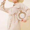 المنتج موسمي. يتكون المنتج من جزأين: جيليه وقميص. يأتي الجاكيت بشكل مزدوج الصدر، مع حزام متحرك وأزرار نشطة على طوله، وهو موديل غير مبطن وشفاف. يوجد نصف سحاب على الجزء الخلفي من القميص الداخلي.