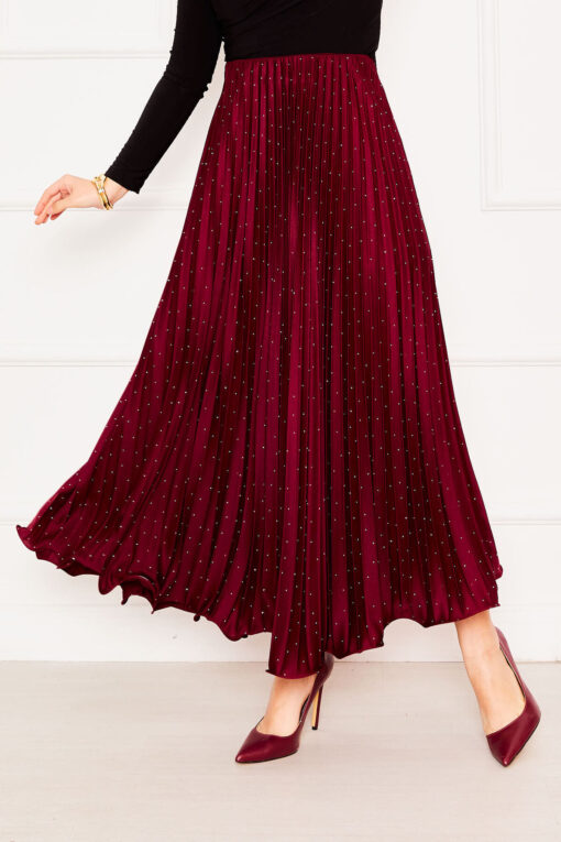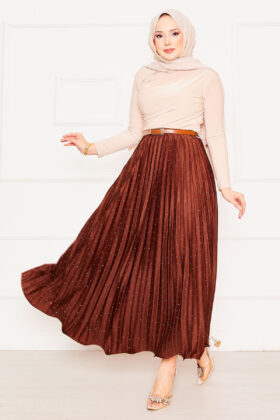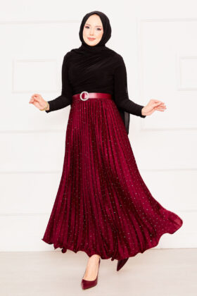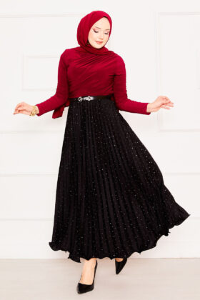 يمكن استخدام المنتج في أربعة فصول. المنتج غير مُبطّن ولا يُظهر ما بداخله. عليه أحجار مُتناثرة وحاشية مُجعّدة. المنتج مرن عند الخصر ومرن وبدون جيوب.