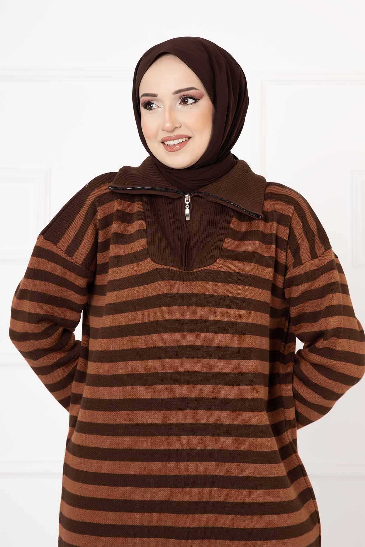 المنتج مخصص لفصلي الخريف والشتاء. خط العنق للمنتج هو الياقة المدورة وله نصف سحاب قابل للاستخدام.
