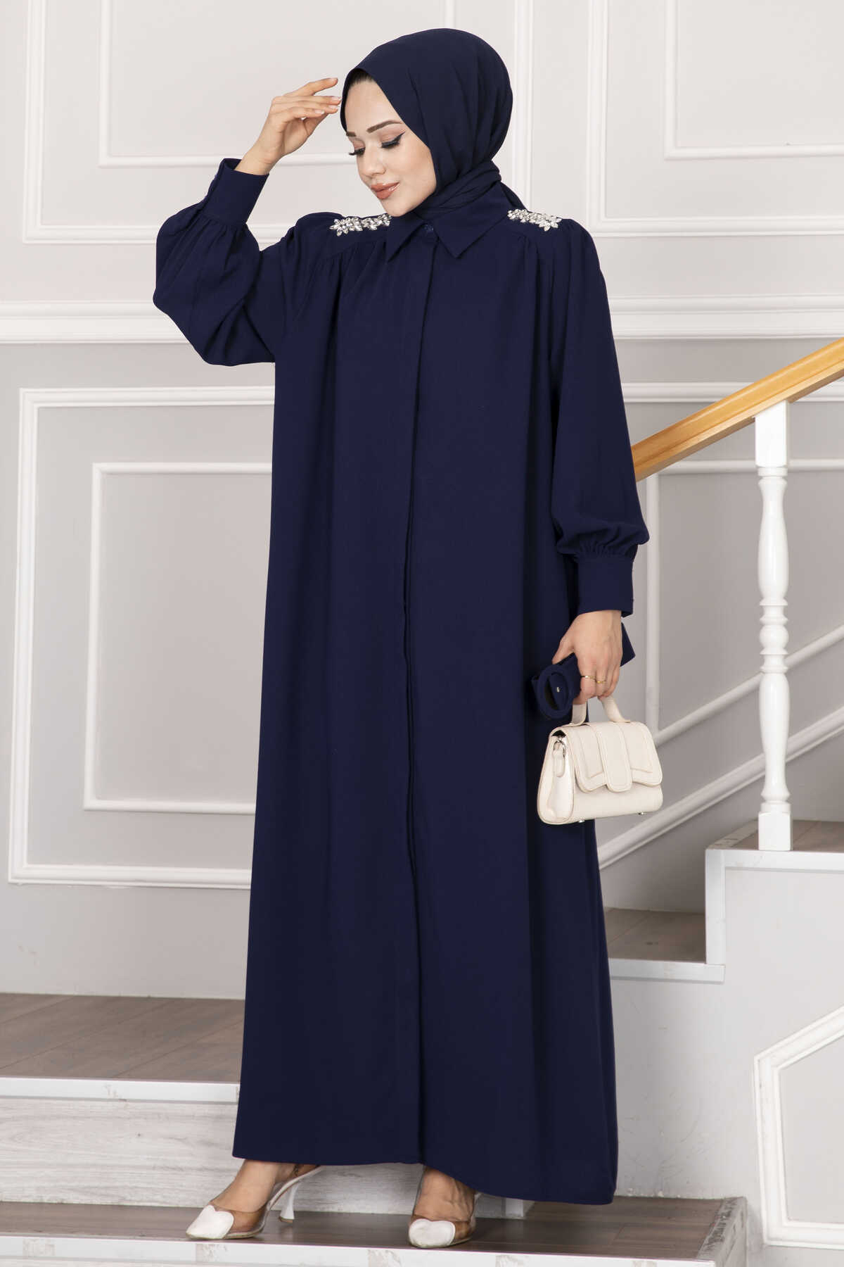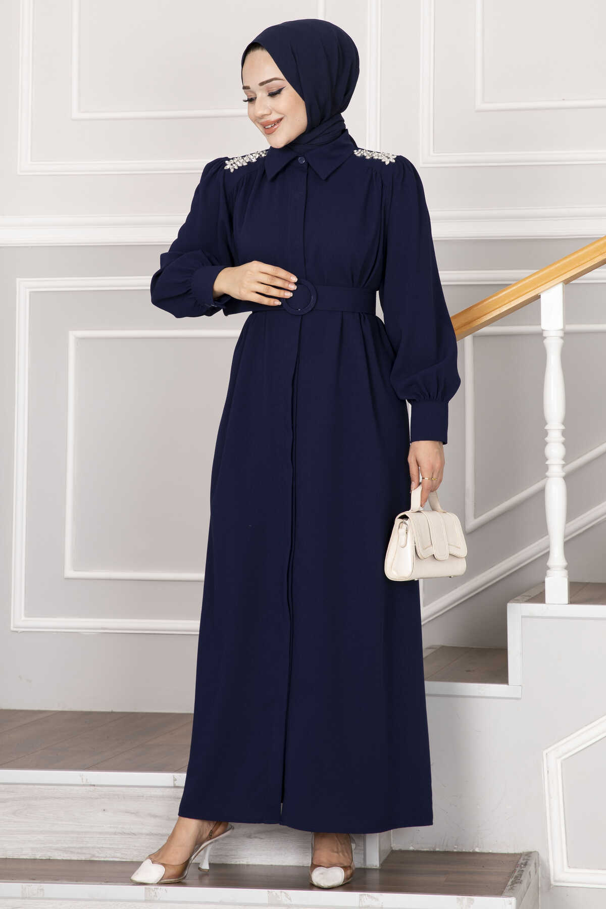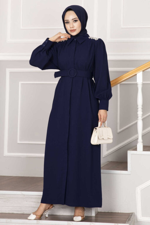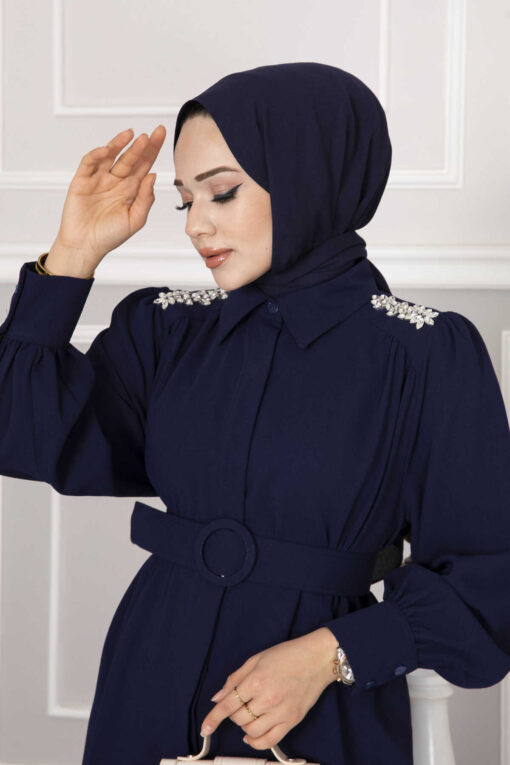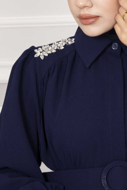 المنتج موسمي. المنتج مزرر من الرقبة وبه حزام. الأصفاد الأكمام هي الأكمام البالونية والأكتاف مطرزة بالحجارة. المنتج غير مُبطن ويمكن استخدامه كفستان أو قميص.