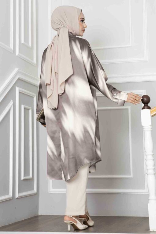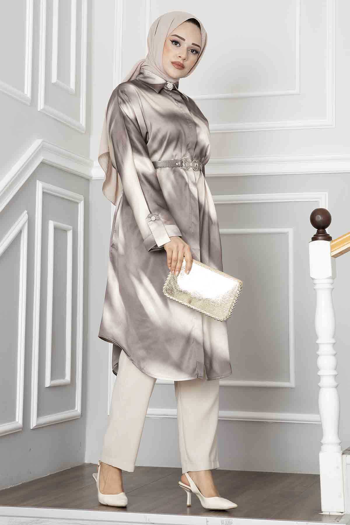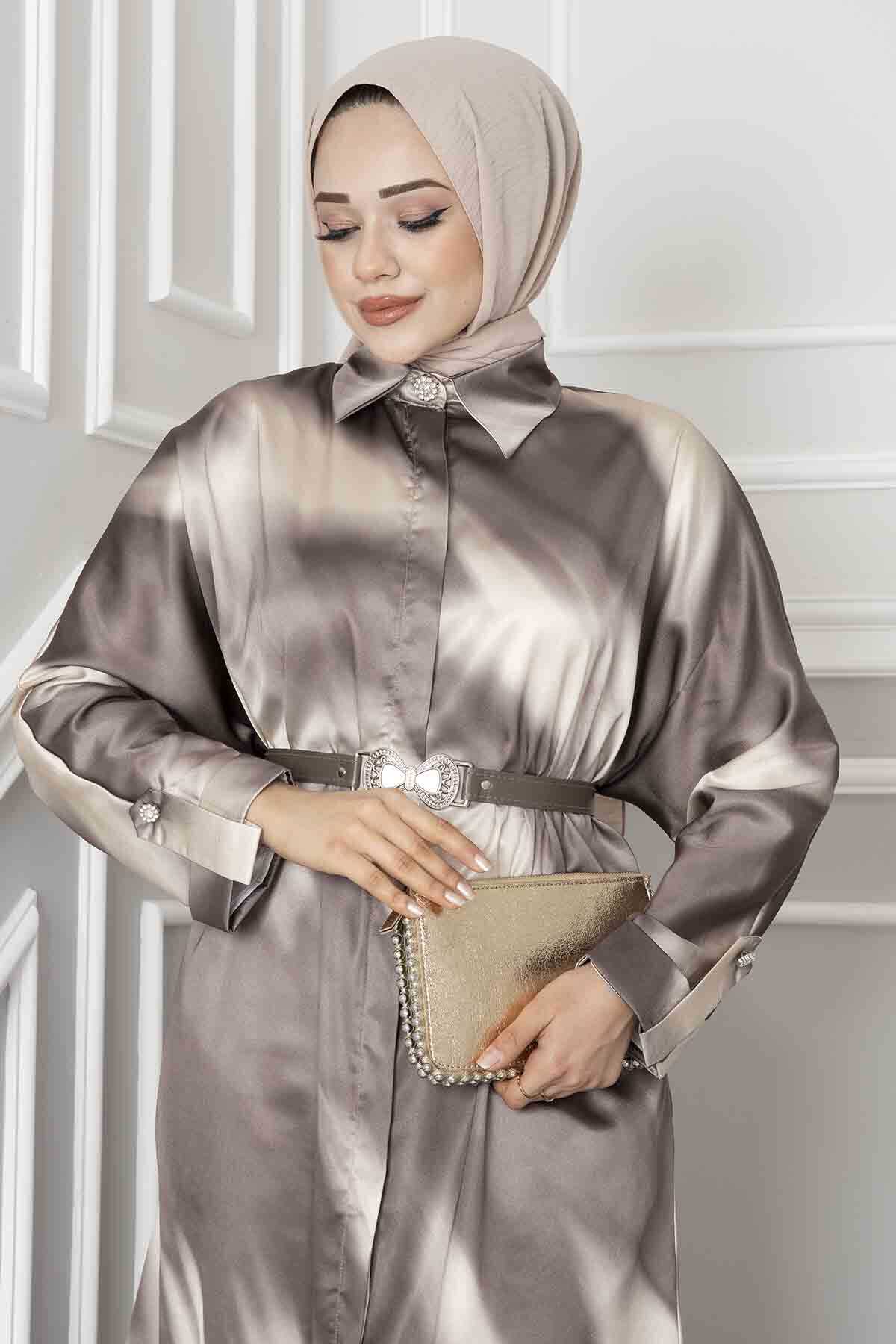 المنتج موسمي. يحتوي التونيك على أزرار مخفية وجيوب مخفية، وأكمام وأساور مطوية. الخصر مزود بحزام متحرك الطول: 105 سم مميزات القماش: مصنوع من قماش الساتان بما أن المنتج مناسب تمامًا، يوصى بطلب المقاس الذي تستخدمه عادةً قياسات الموديل: مقاس 38 / الارتفاع 1.68 سم / الأرداف 90 سم / الخصر 77 سم / الصدر 90 سم تعليمات الغسيل: 30 درجة (يجب أن يكون الحد الأدنى للغسيل على الجانب العكسي باستخدام 100 درجة).قد يكون هناك اختلاف في لون المنتج بسبب التصوير.الشال المستخدم في هذا المنتج
