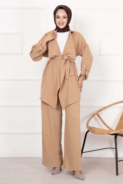 المنتج موسمي. يتكون المنتج من قطعتين: الكيمونو والبنطلون. يحتوي خصر الكيمونو على حزام متحرك. يتميز البنطلون بخصر مطاطي وهو بدلة مريحة للغاية الطول: كيمونو 78 سم البنطلون: 103 سم القماش: مصنوع من قماش الكريب المستورد نظرًا لأن المنتج مناسب تمامًا، فمن المستحسن طلب المقاس الذي تستخدمه عادةً. المقاس 38 / الارتفاع 1.68 سم / الأرداف 90 سم / الخصر 77 سم / الصدر 90 سم تعليمات الغسيل: يجب أن يتم الغسيل مقلوبًا باستخدام 30 درجة (أدنى درجة حرارة). قد يكون هناك اختلاف في لون المنتج بسبب التصوير المستخدمة في هذا المنتج
