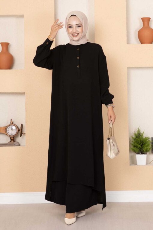 المنتج موسمي. يتكون المنتج من قطعتين: تونيك وبنطلون. تحتوي السترة على نصف أزرار في الأمام. يتميز البنطلون بخصر مطاطي وهو بدلة مريحة للغاية مقاس 1 = 38-402 مقاس = 42-443 مقاس = 46-484 مقاس = 50-52 الطول: تونيك خلفي: 120 سم تونيك أمامي: 137 سم البنطلون: 108 سم. مميزات القماش: مصنوع من قماش إيروبين. بما أن المنتج مناسب تمامًا، فمن المستحسن طلب المقاس الذي تستخدمه عادةً. قياسات الموديل: المقاس 38 / الارتفاع 1.68 سم / الأرداف 90 سم / الخصر 77 سم / الصدر 90 سم تعليمات الغسيل: الغسيل. يجب أن يتم ذلك من الداخل إلى الخارج عند 30 درجة (أدنى درجة). قد تختلف درجة لون المنتج بسبب التصوير
