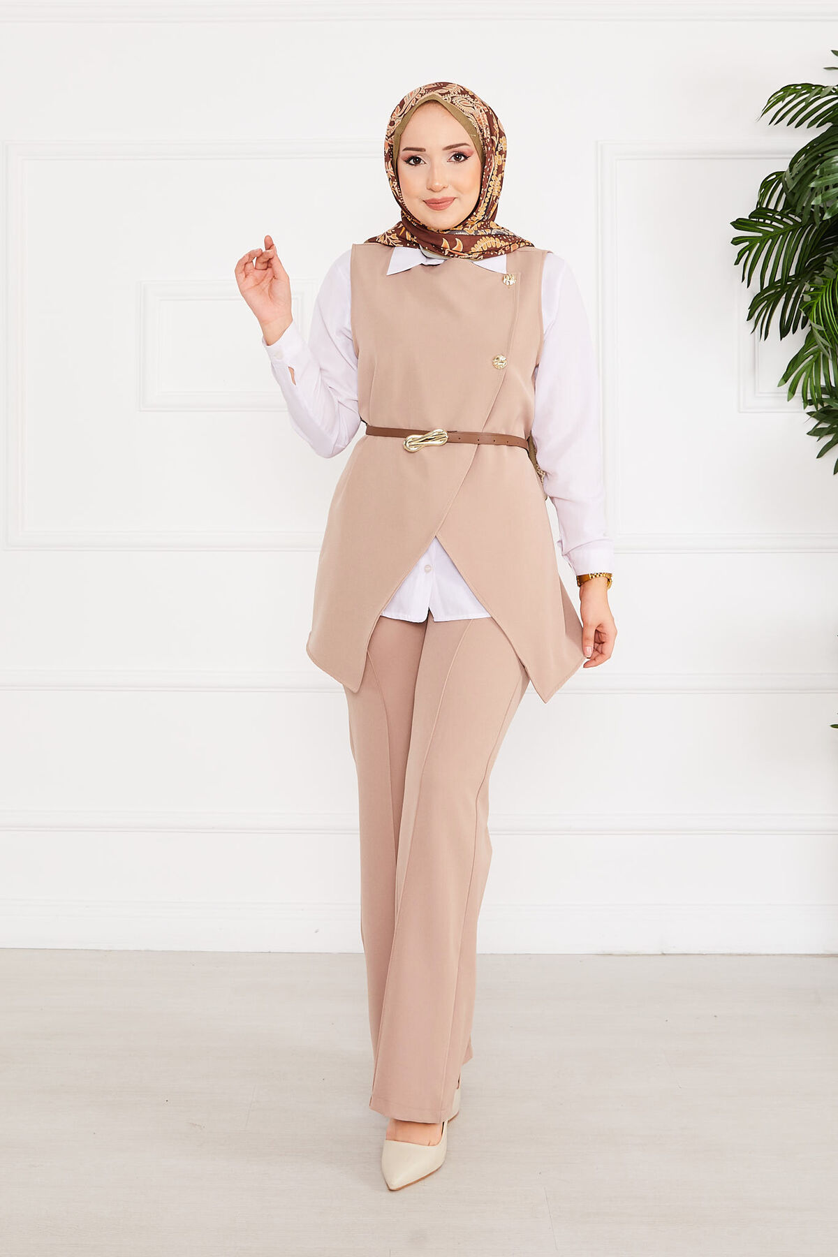 المنتج موسمي. المنتج يتكون من قطعتين: سترة وسروال. ينبغي أن تكون السترة مزرّرة من الأمام. يتميز البنطلون بخصر مطاطي وتفاصيل سحاب أمامي.