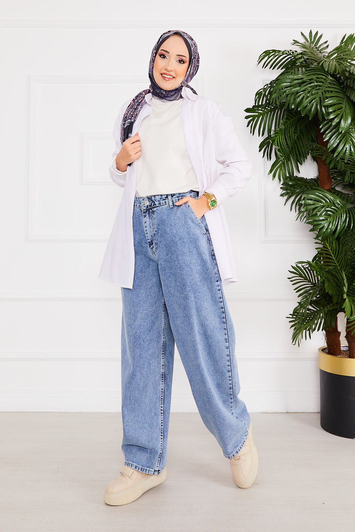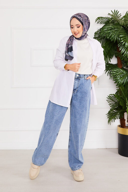 المنتج موسمي. المنتج له ساق واسعة ويحتوي على سحاب وأزرار. بالإضافة إلى ذلك، يمكن استخدام الجيوب الخلفية والأمامية بشكل نشط.
